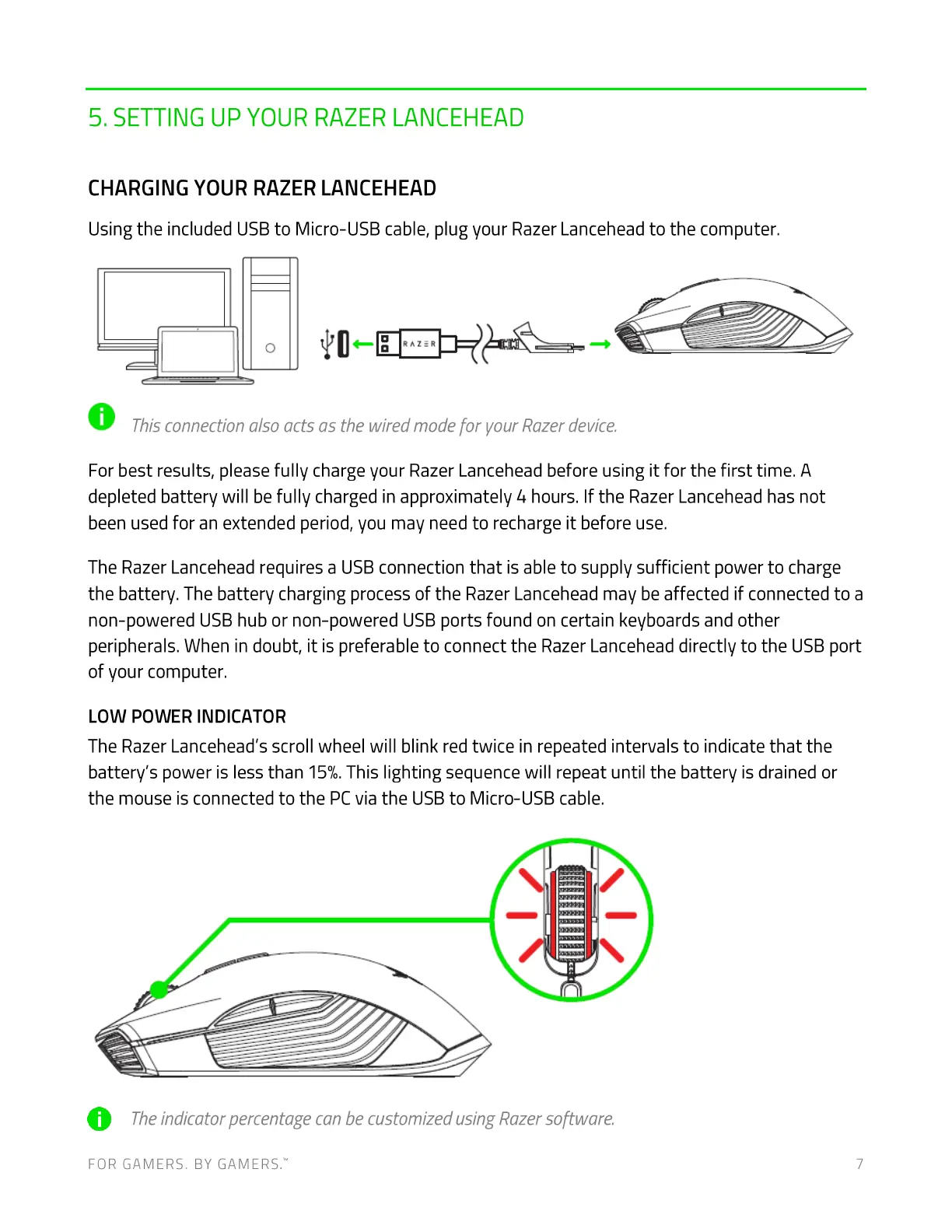 For best results, please fully charge your Razer Lancehead before using it for the first time. A