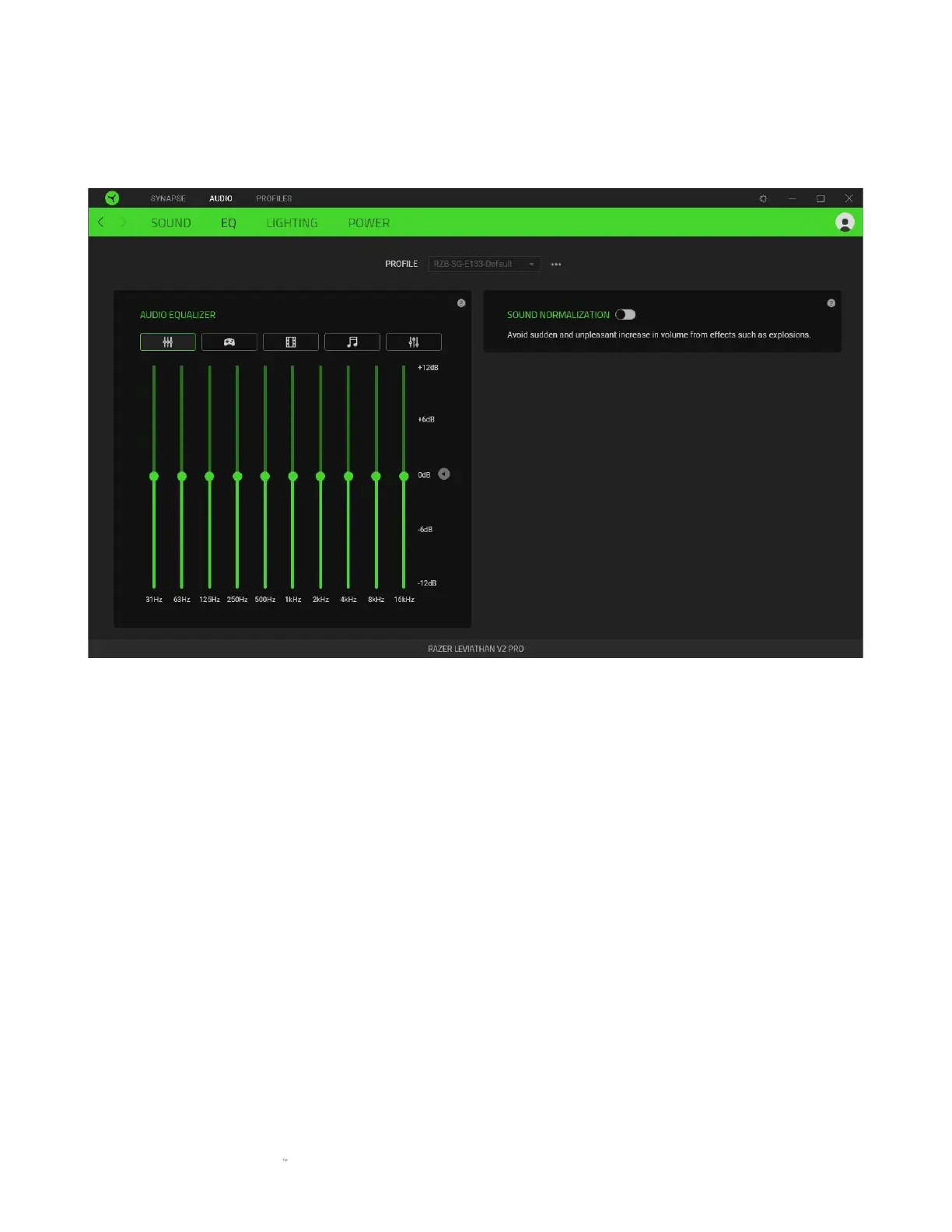 Use the EQ subtab to customize the frequency response of the soundbar or normalize the loudness
