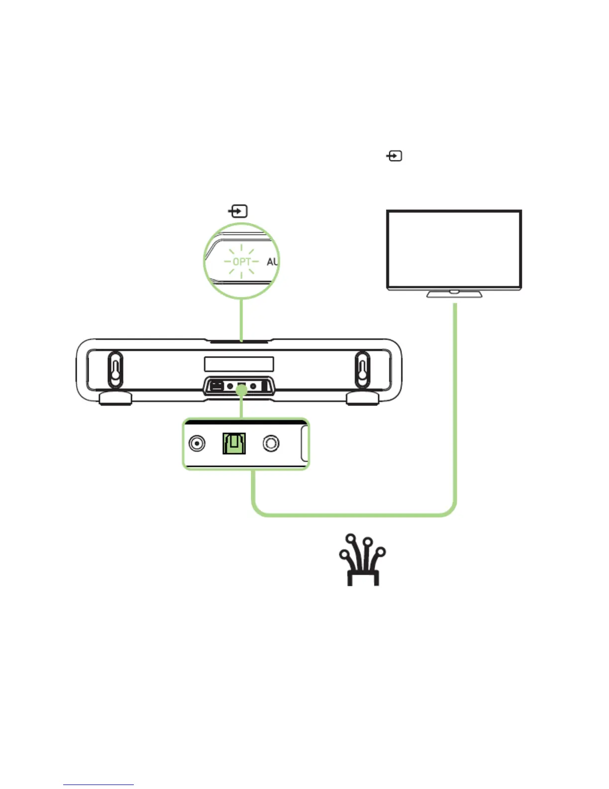 Connect via Razer Leviathan’s optical port and press the button until the OPT LED