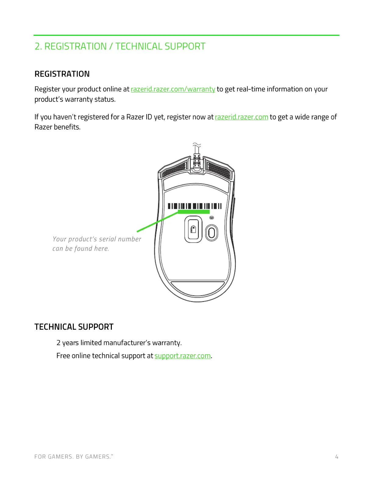Register your product online at razeridxazerom/warrantv to get real-time information on your