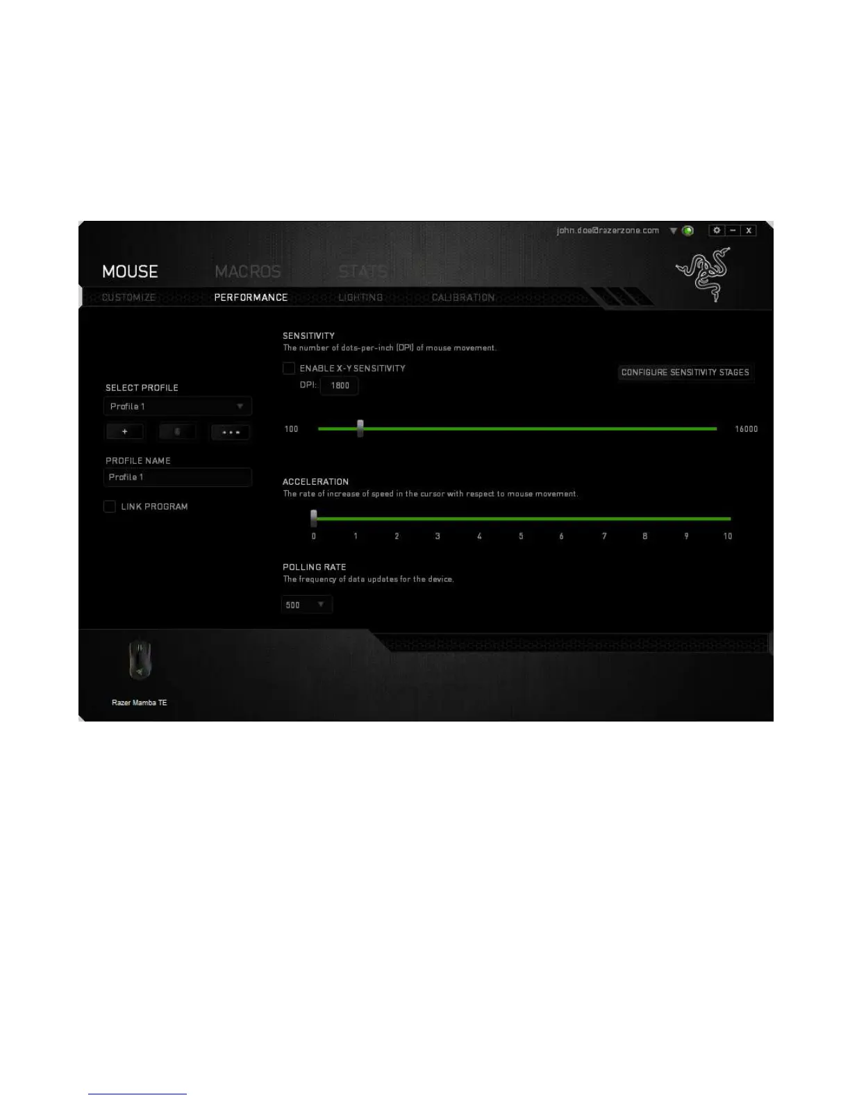 The Performance Tab allows you to enhance the speed and precision of your mouse