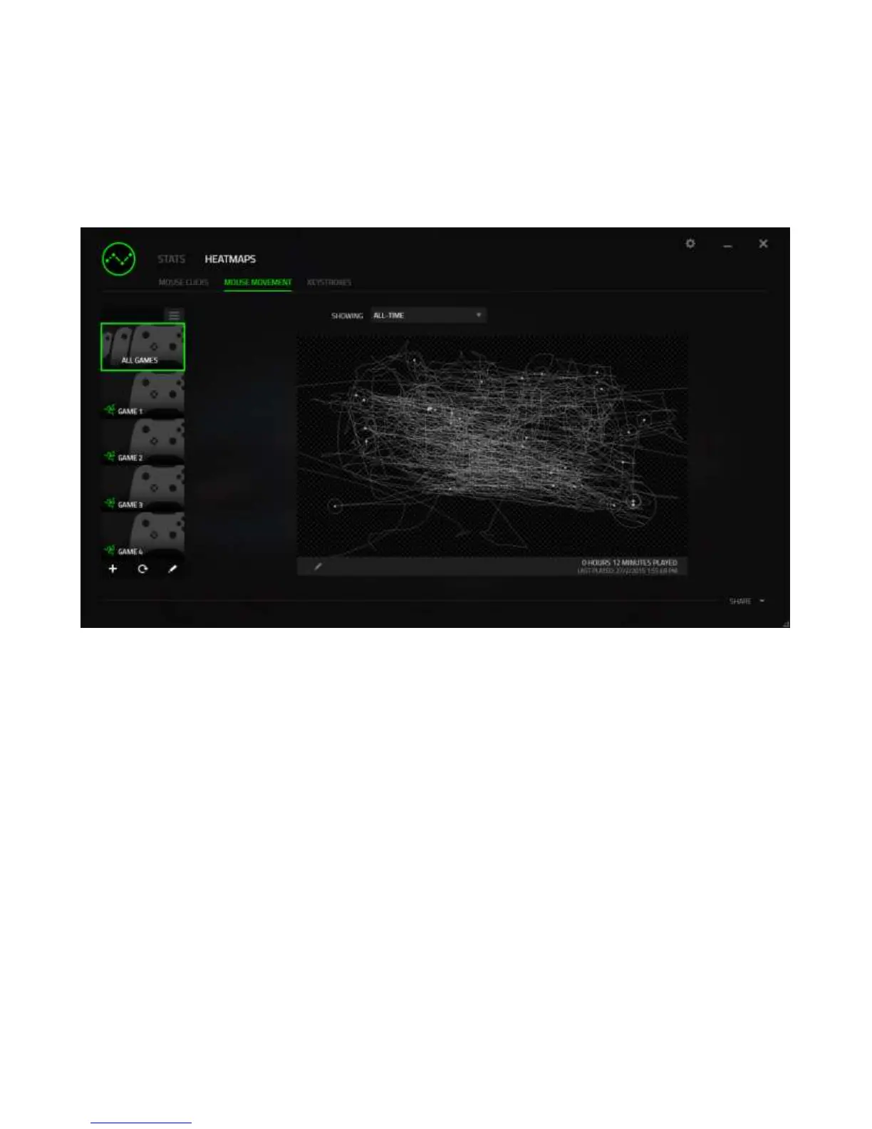 Mouse heatmaps can be overlayed on game screenshots.