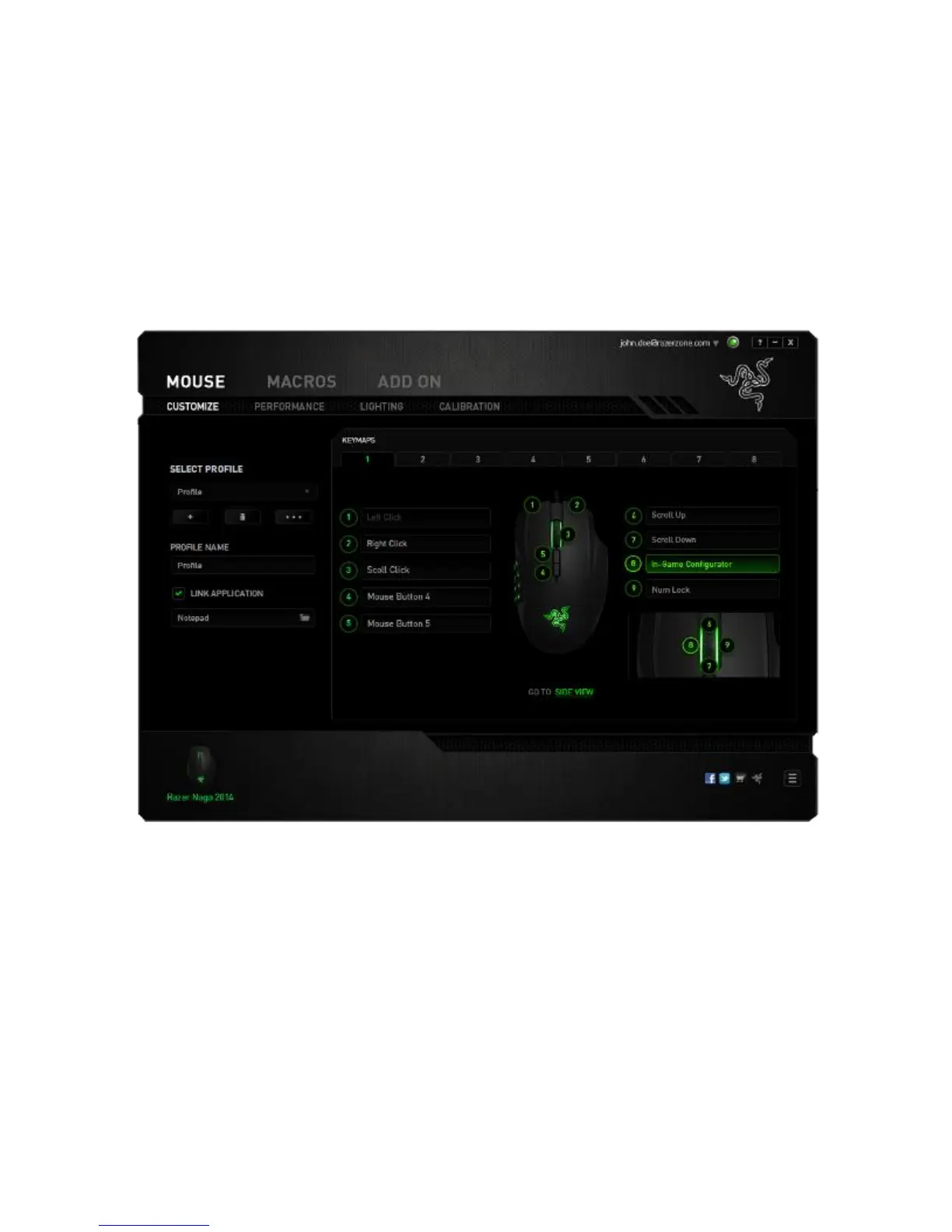 The Top View is where you can customize the mouse buttons and the scroll wheel.