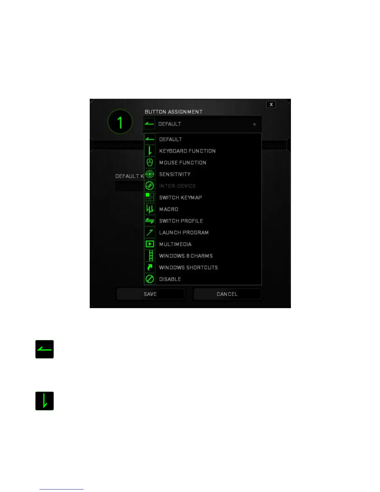 Initially, each of the mouse buttons is set to Default. However, you may change the