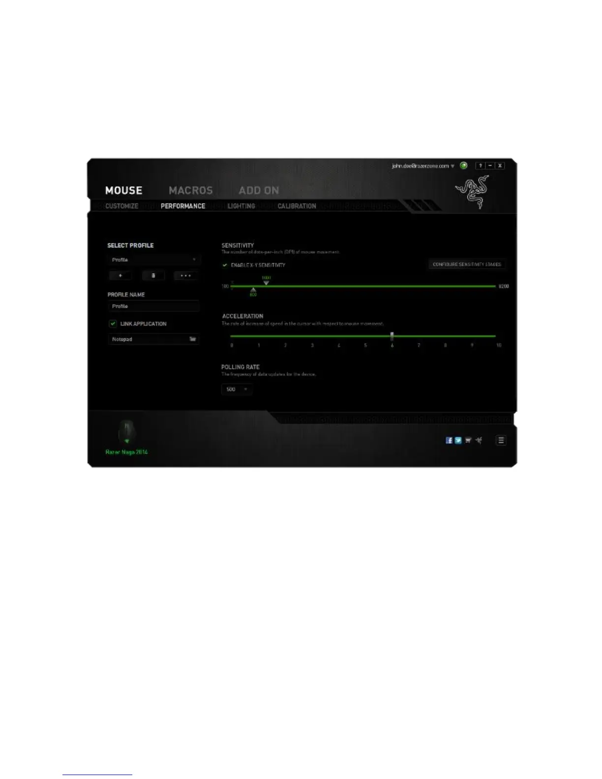 The Performance Tab allows you to enhance the speed and precision of your mouse