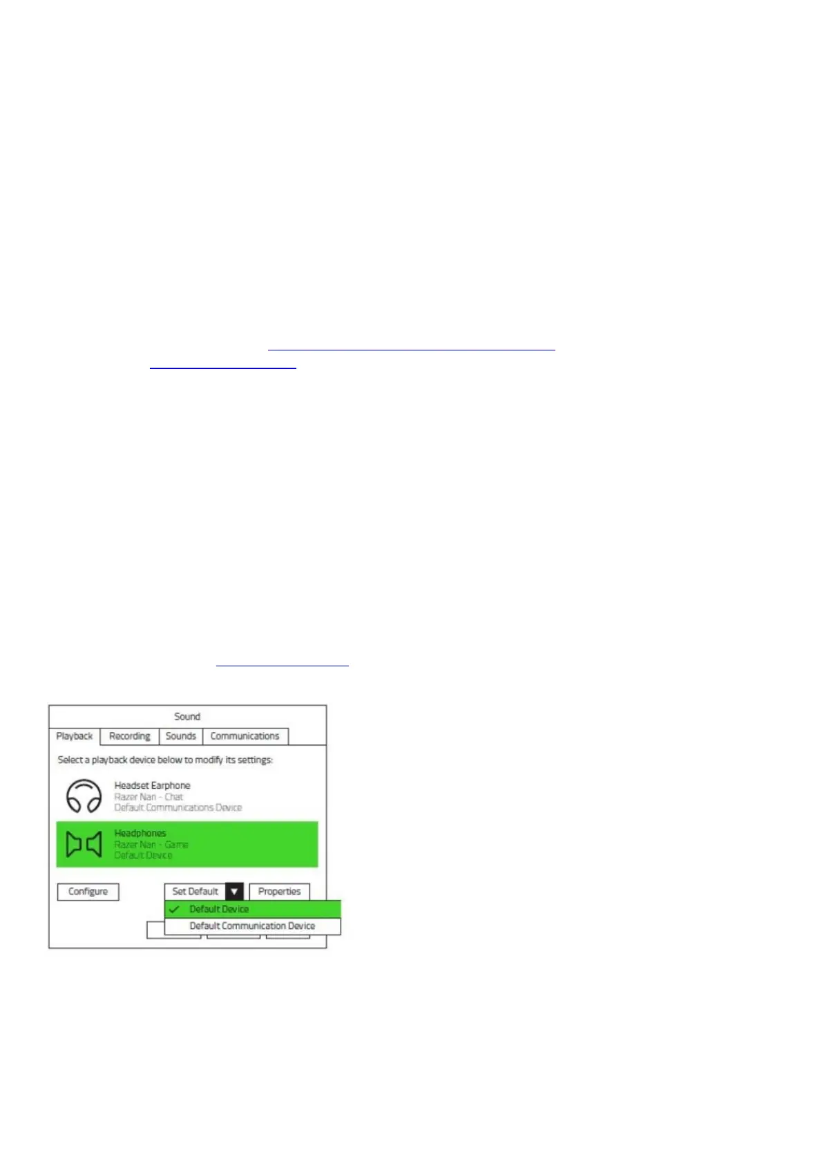 set to be the default playback device in the Audio Control panel or in the Software Audio Options.