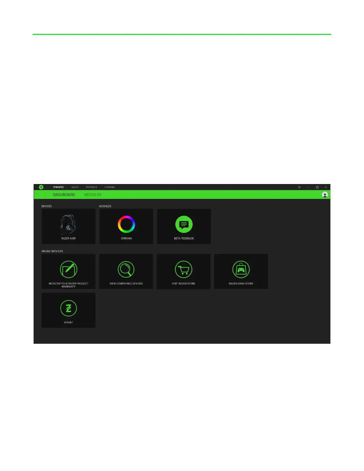The Dashboard subtab is an overview of your Razer Synapse 3 where you can access all