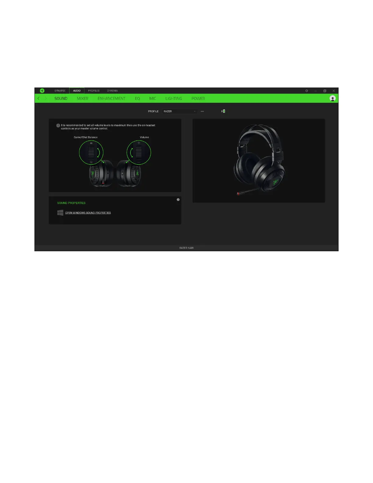 The Audio tab is the main tab for your Razer Nari. From here, you can customize your