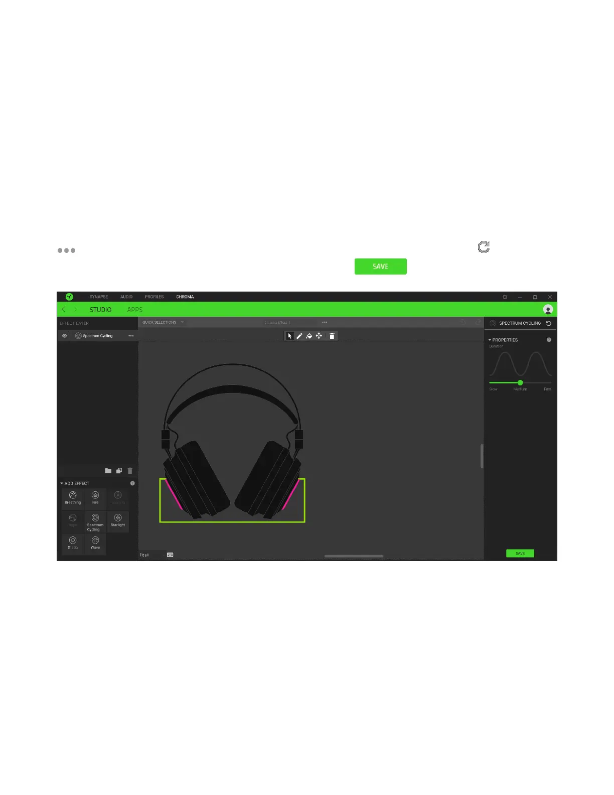 The Studio subtab enables you to create and edit your own Chroma Effects which you can