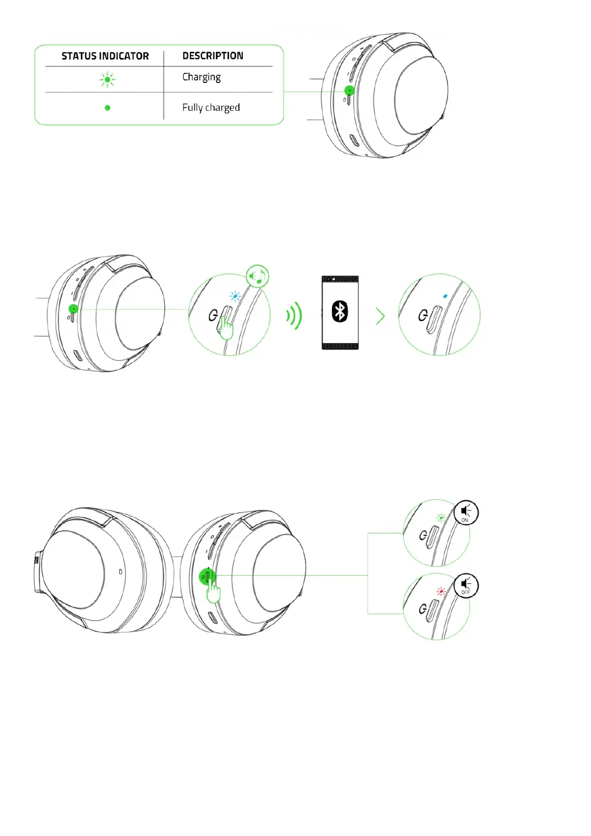 pair it with your Razer Opus X. Once the headset is paired, the status indicator will briefly change to static blue.