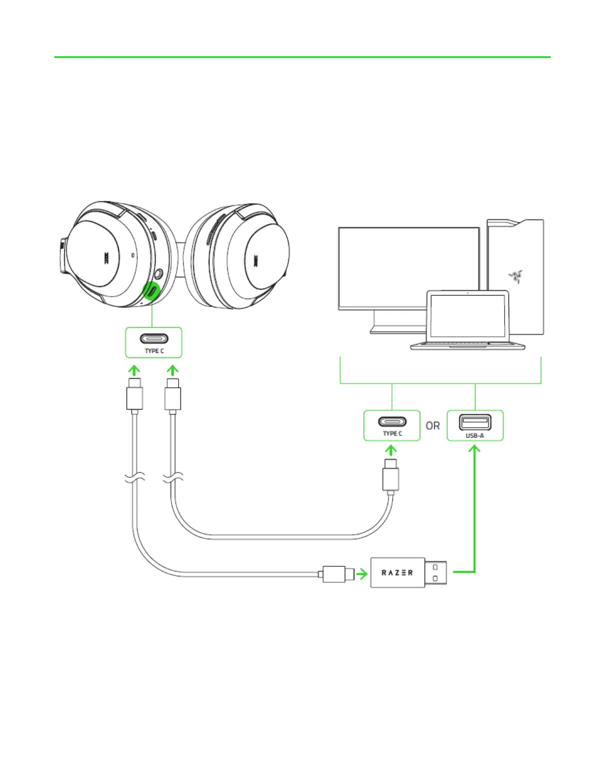 Connect your Razer Opus directly to any Type C port using the charging cable or to any USB-