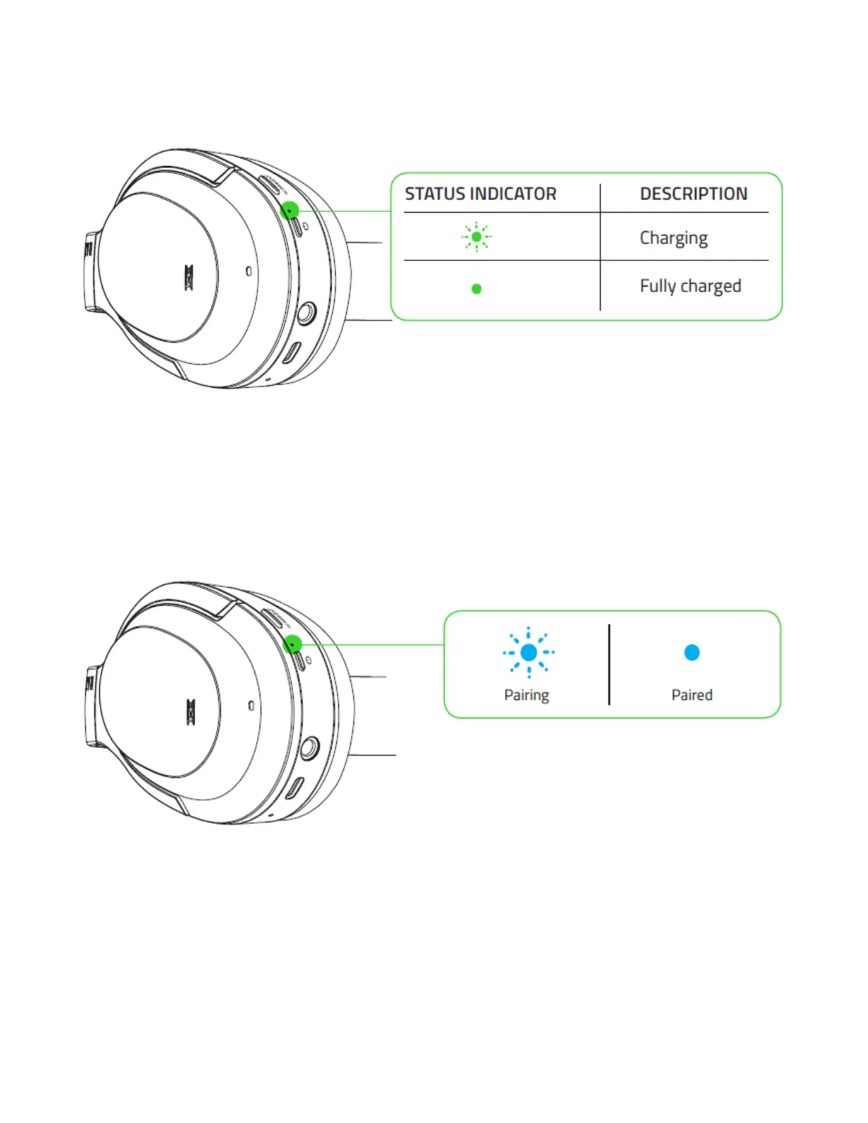 headset is paired, the status indicator will change to static blue.