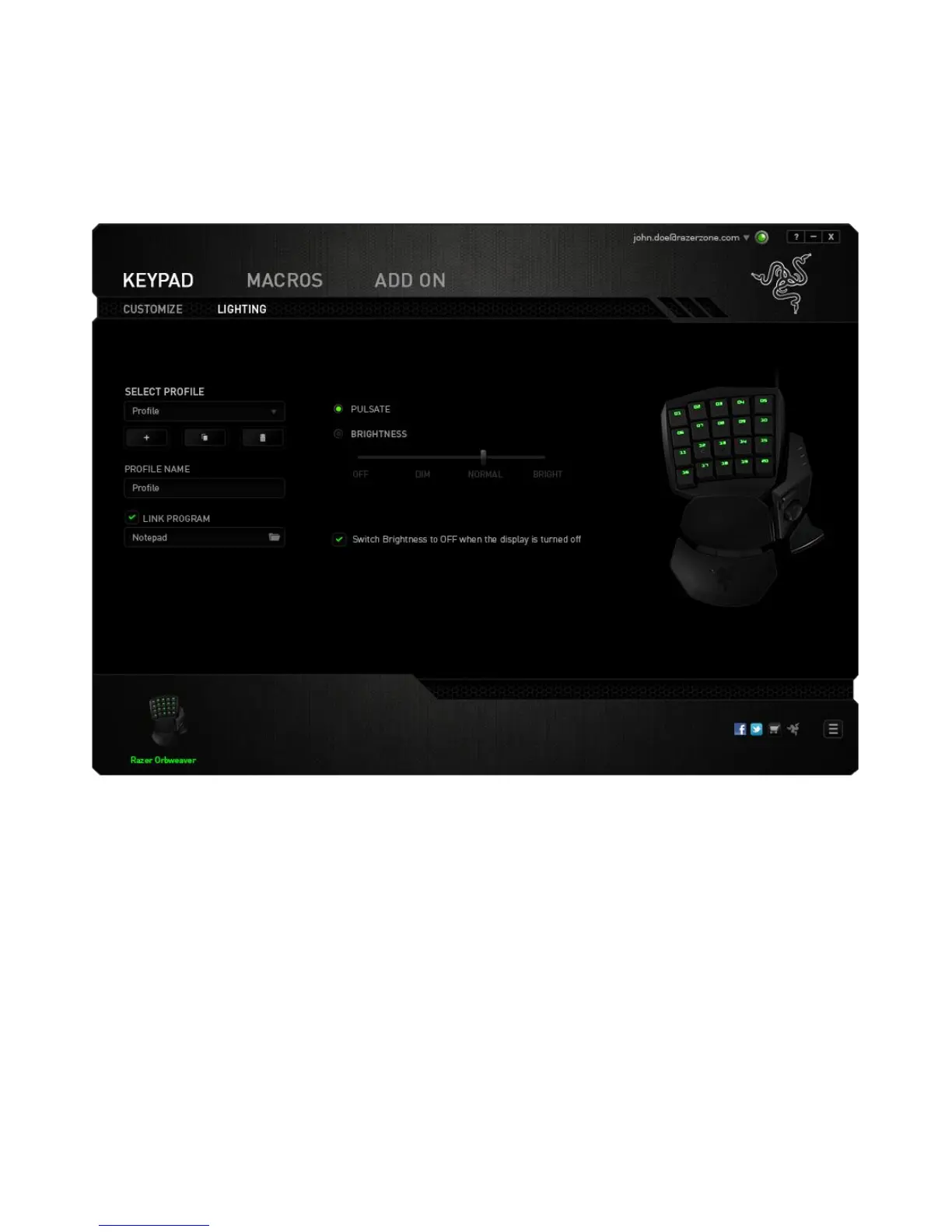 The Lighting Tab allows you to adjust the backlight by using the BRIGHTNESS slider or