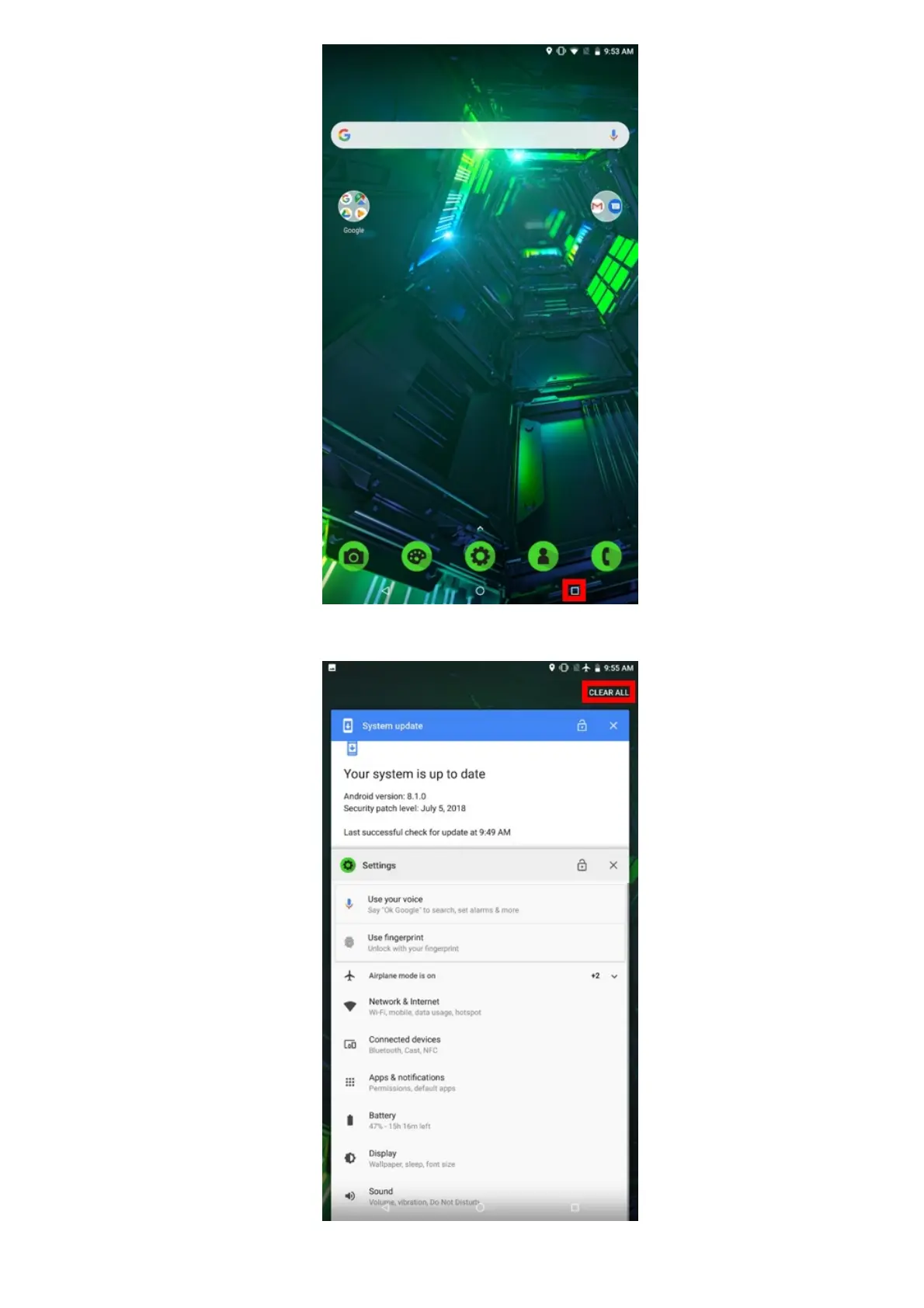 4. Tap “CLEAR ALL” to clear apps that are running in the background.