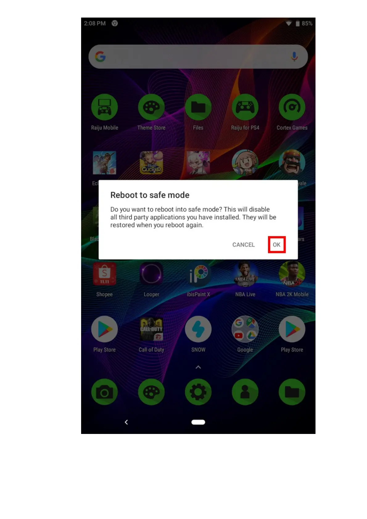 d. After the reboot, the words “Safe mode” will be labeled on the bottom of the screen.