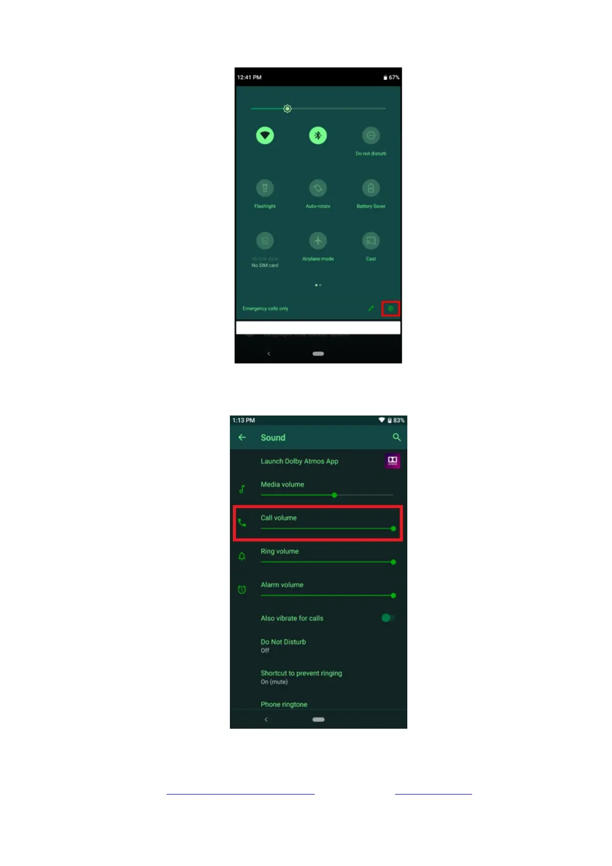7. Select the “Sound” settings. Ensure the “Call volume” is set to its maximum for testing. You can