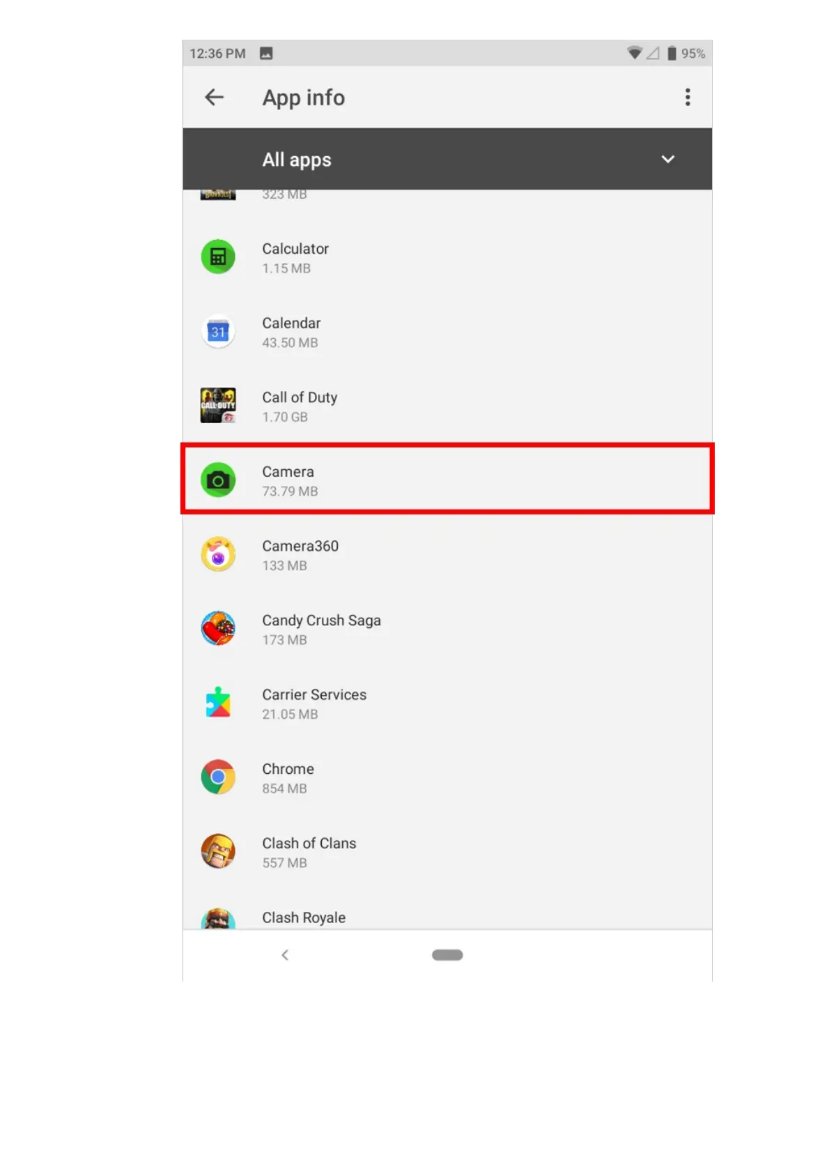 c. Reset the Camera app by tapping on “FORCE STOP”.