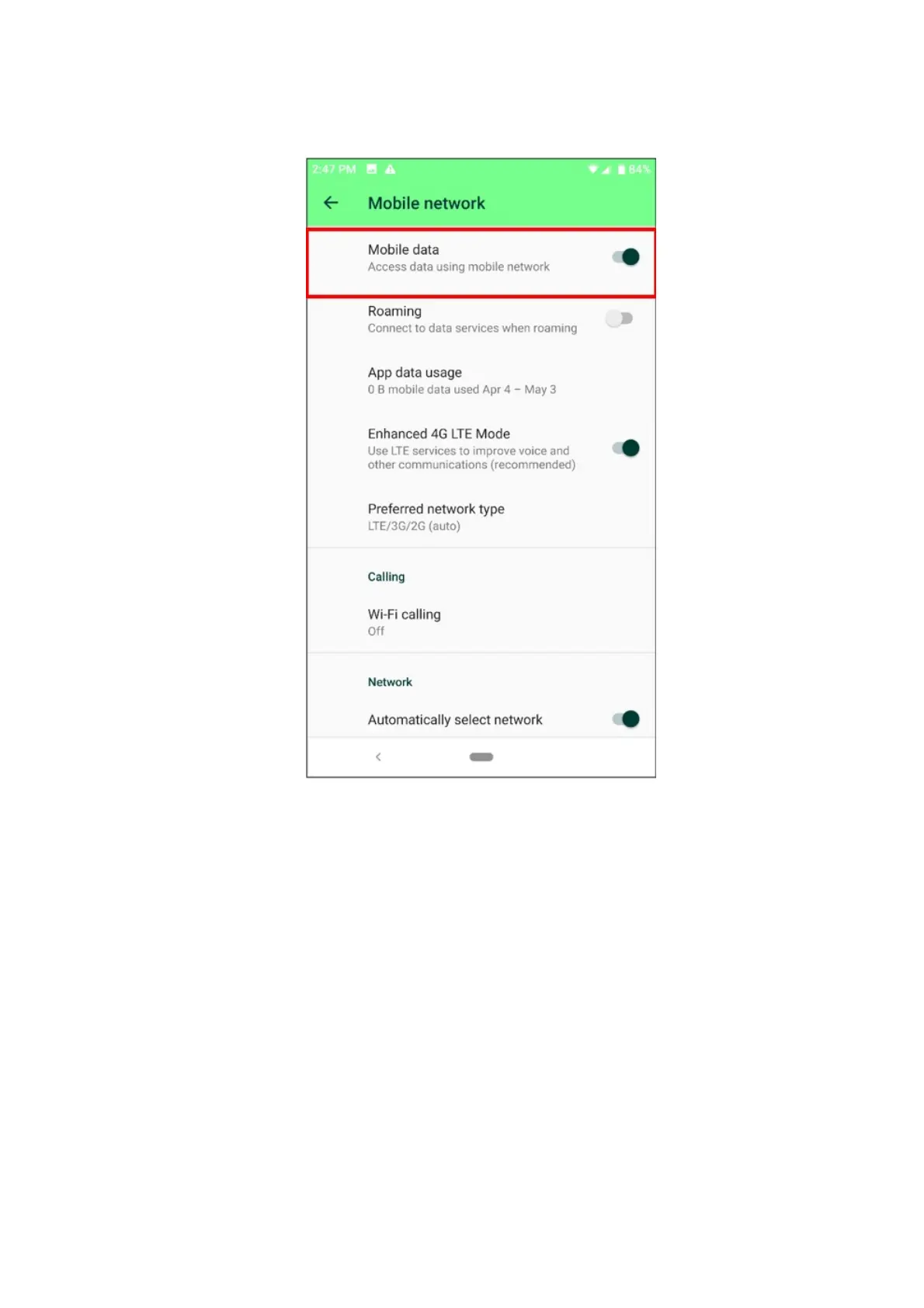 1. Be sure to enable “Mobile data” on your phone by going to Settings > Network & internet >