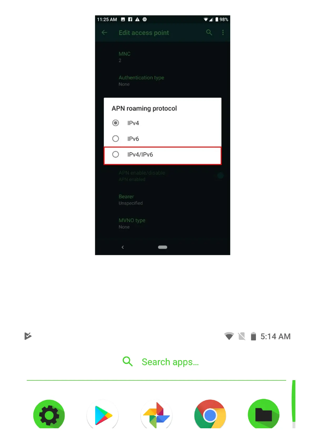 when the customer’s preferred network type is LTE/CDMA. To resolve this, the user needs to change
