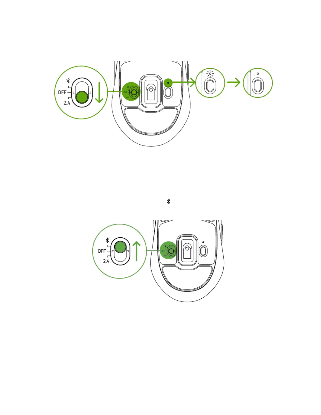 3. Push the slider switch to Razer™ HyperSpeed wireless (2.4 GHz) mode. When