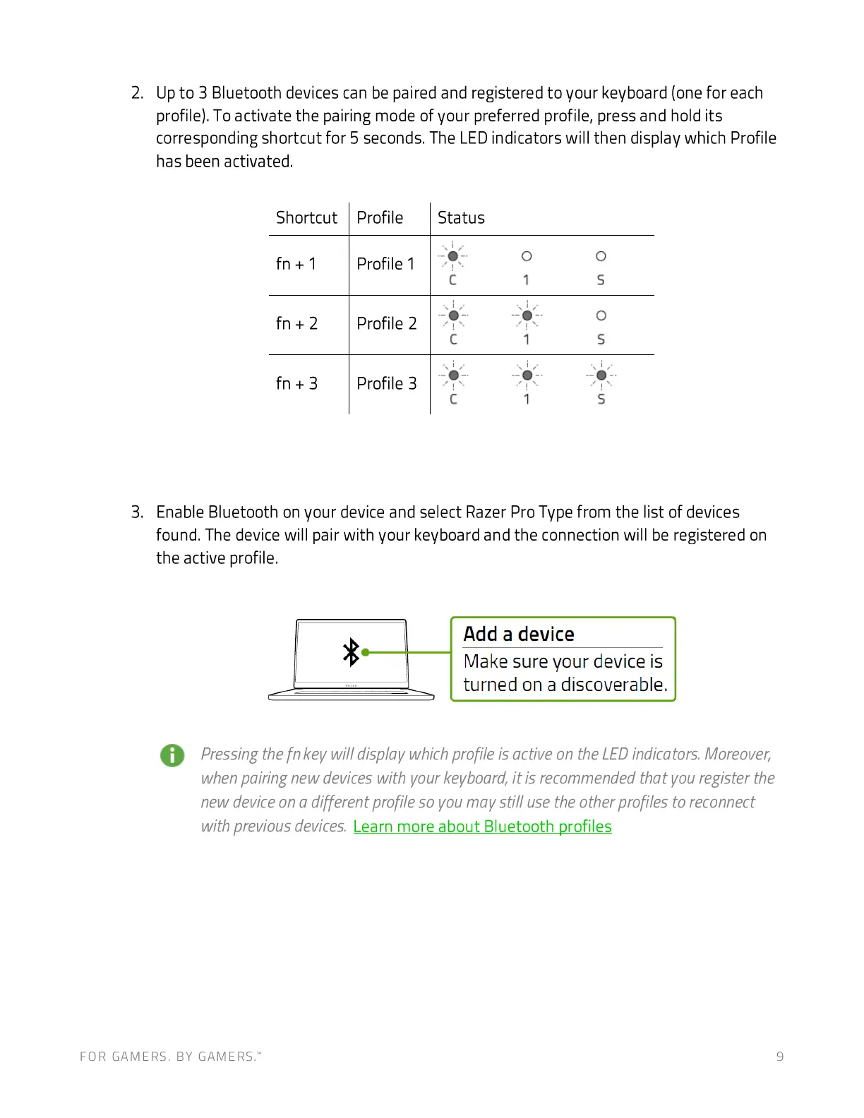corresponding shortcut for 5 seconds. The LED indicators will then display which Profile