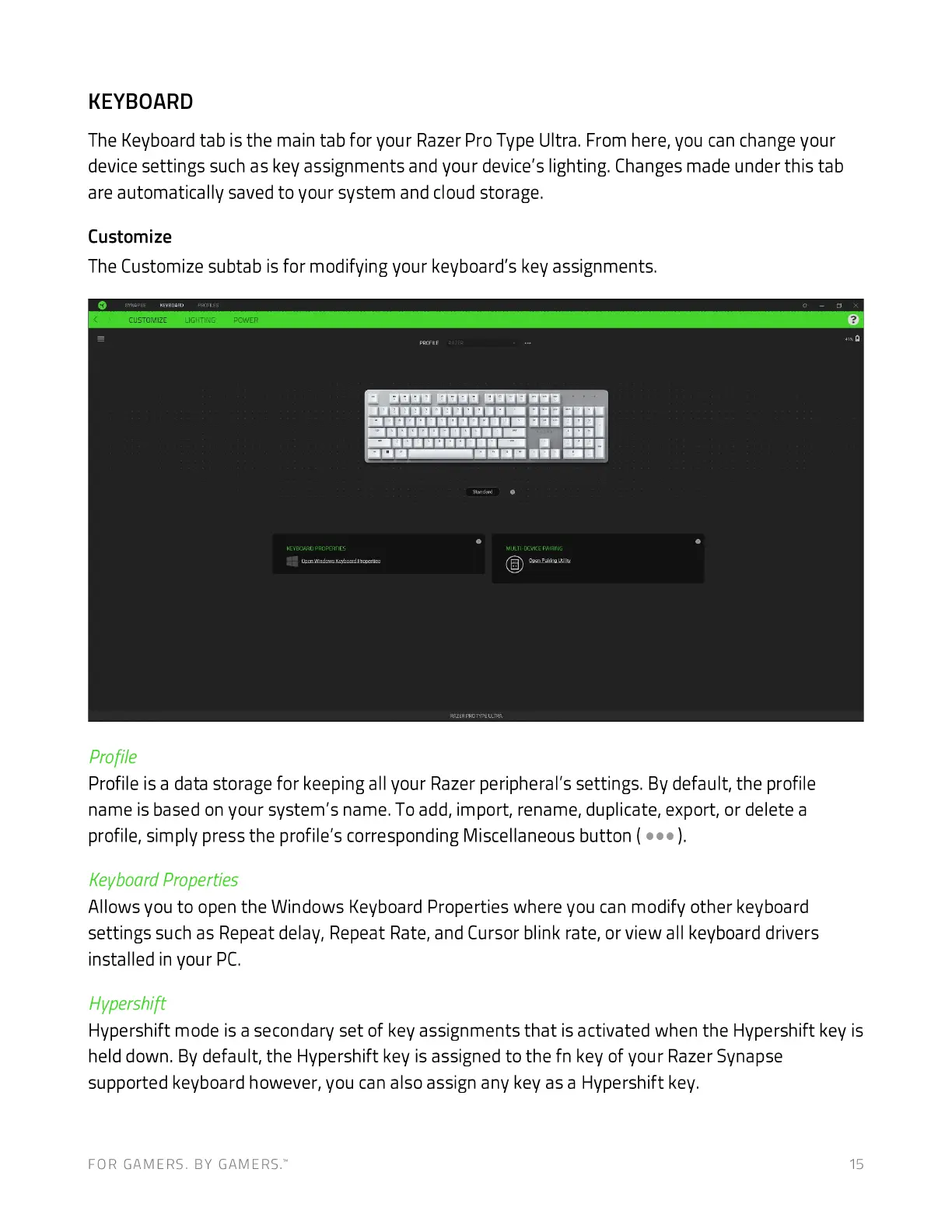 The Keyboard tab is the main tab for your Razer Pro Type Ultra. From here, you can change your