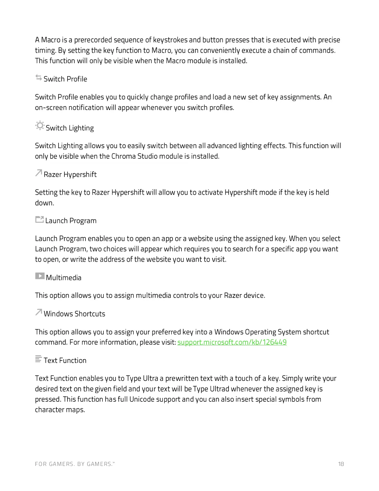 Switch Profile enables you to quickly change profiles and load a new set of key assignments. An