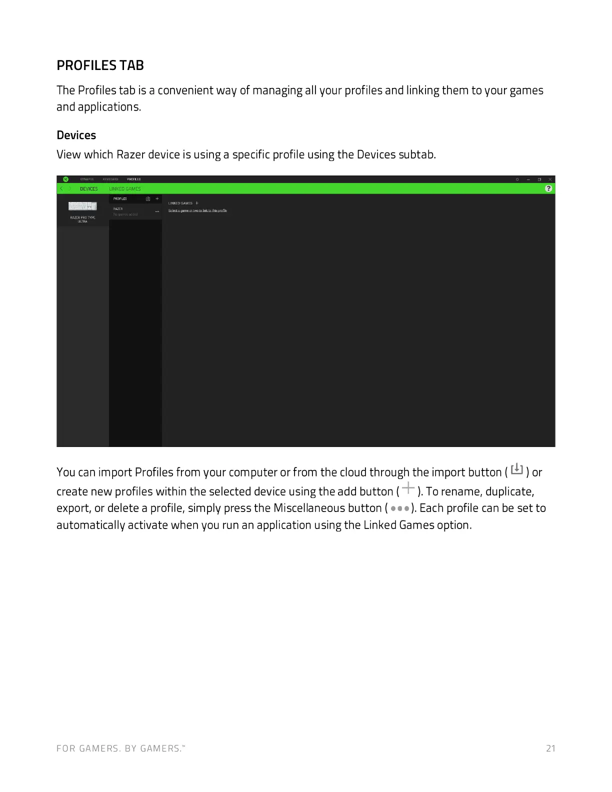 The Profiles tab is a convenient way of managing all your profiles and linking them to your games