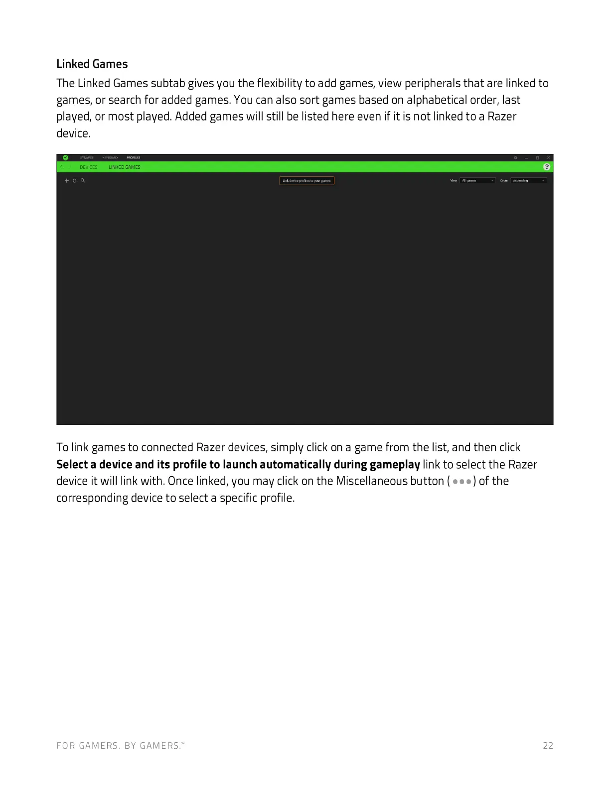 played, or most played. Added games will still be listed here even if it is not linked to a Razer