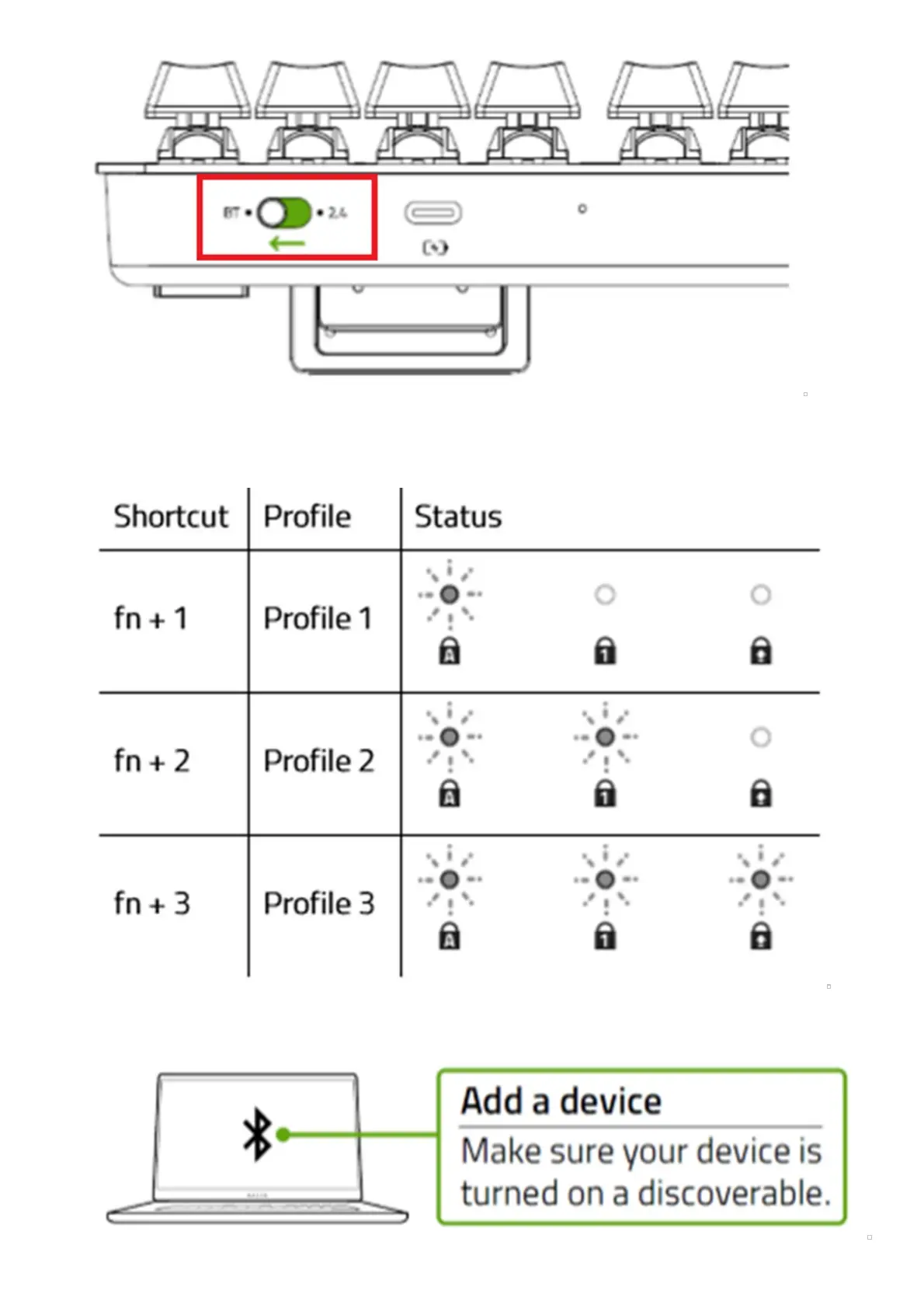 2. Up to 3 Bluetooth devices can be paired and registered to your keyboard (one for each profile). To