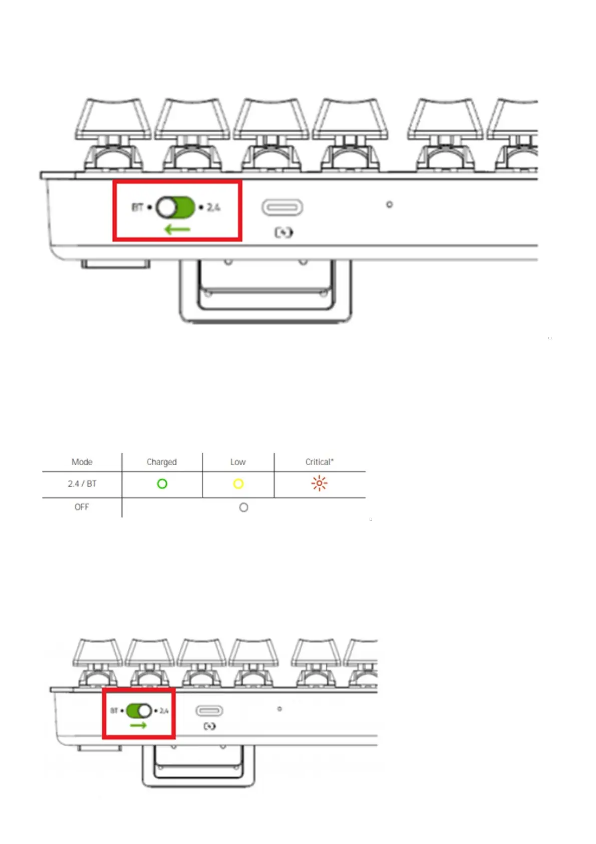 You can switch the connectivity mode of the Razer Pro Type | RZ03-03070 between 2.4GHz and Bluetooth by