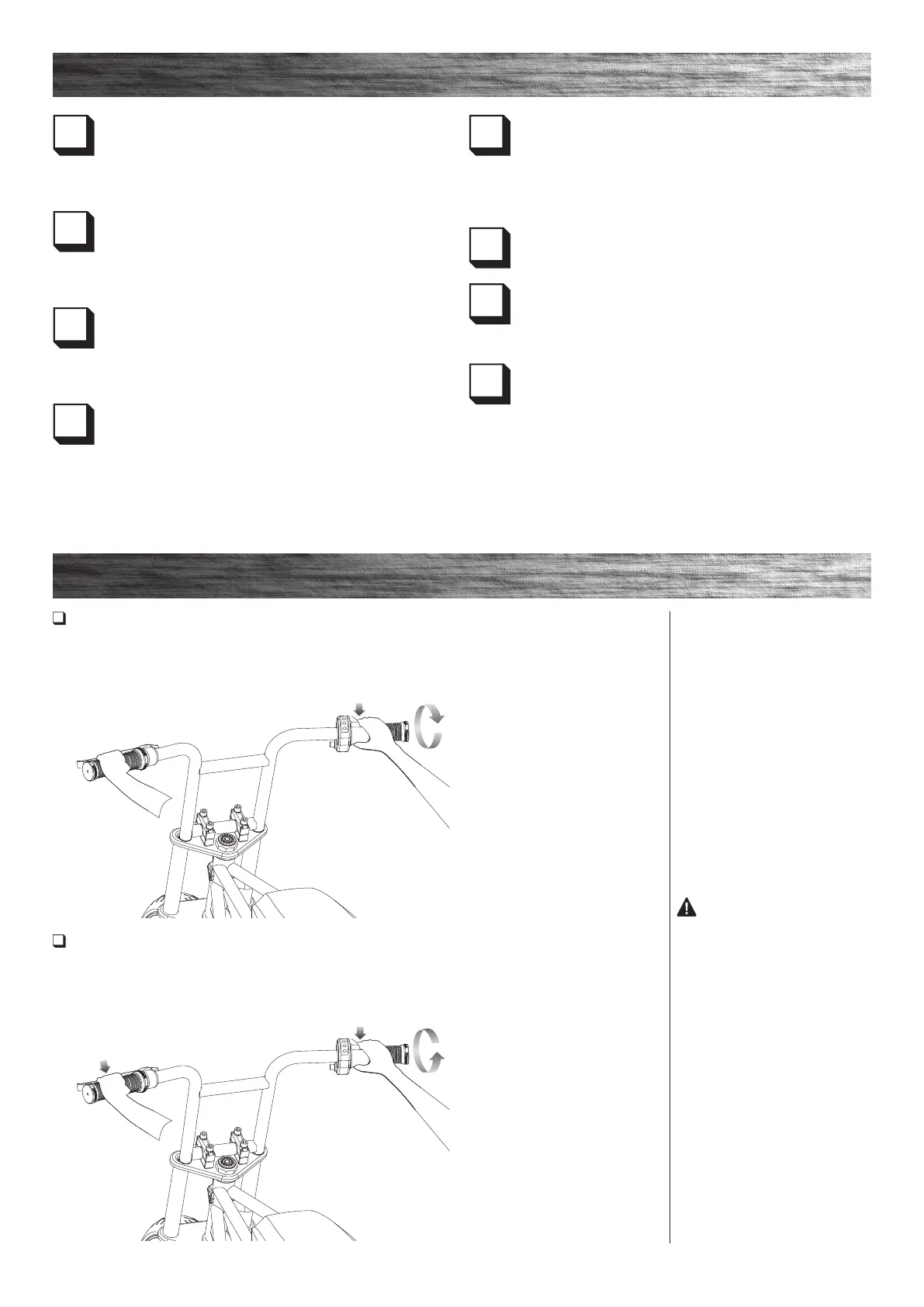 Before every ride, check all parts, such as nuts, bolts, cables,