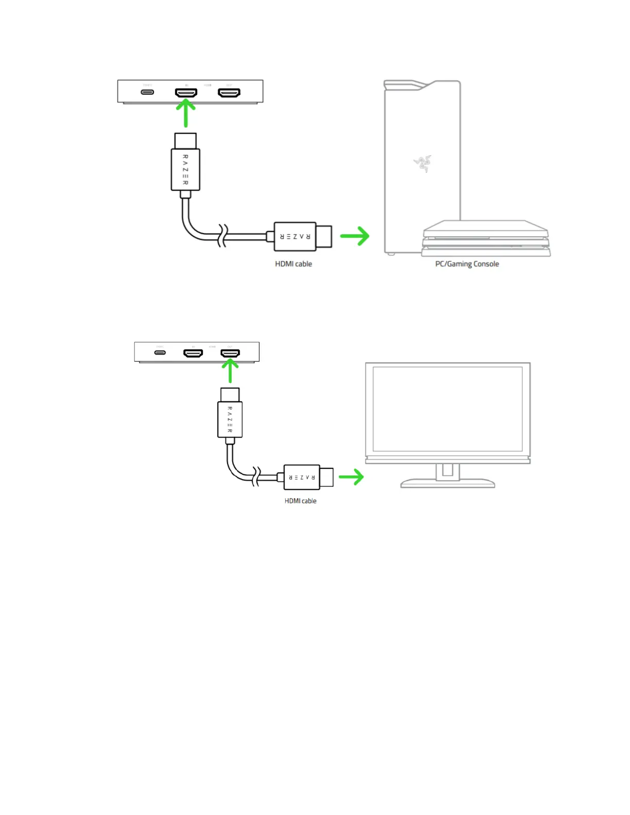 Razer Ripsaw HD - Completing Ripsaw HD Connections; Step 2 & 3: Connect HDMI Output and USB Power