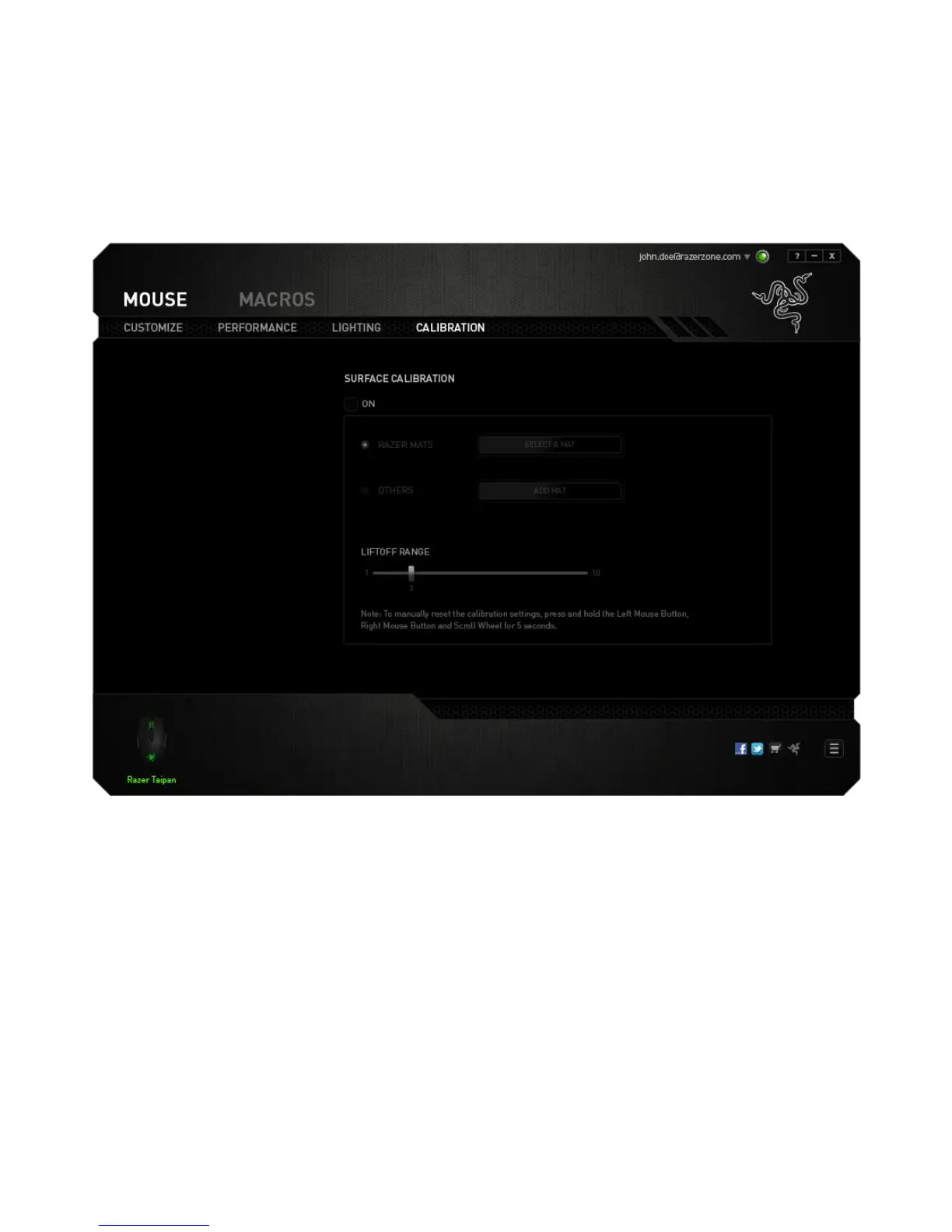 The Calibration Tab allows you to optimize your Razer Precision Sensor to any mousing