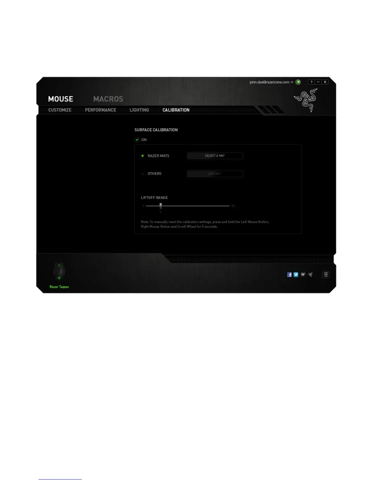 Once you have activated the SURFACE CALIBRATION option, you must then choose the