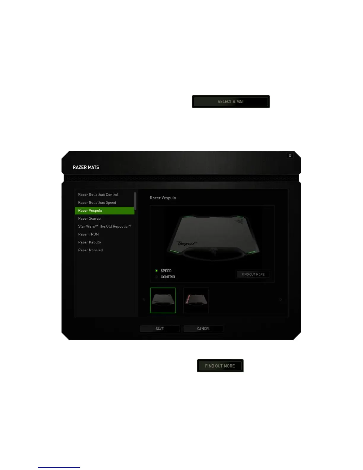 the Razer Mats submenu. This menu showcases an extensive list of Razer-branded