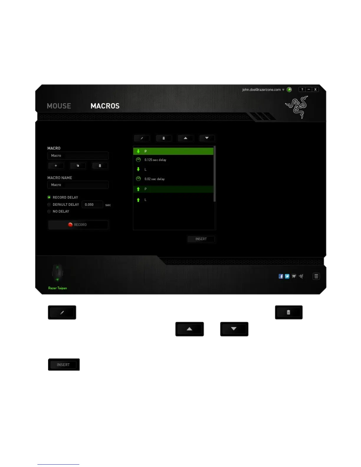 selecting each command on the macro screen. Each keystroke or button press is
