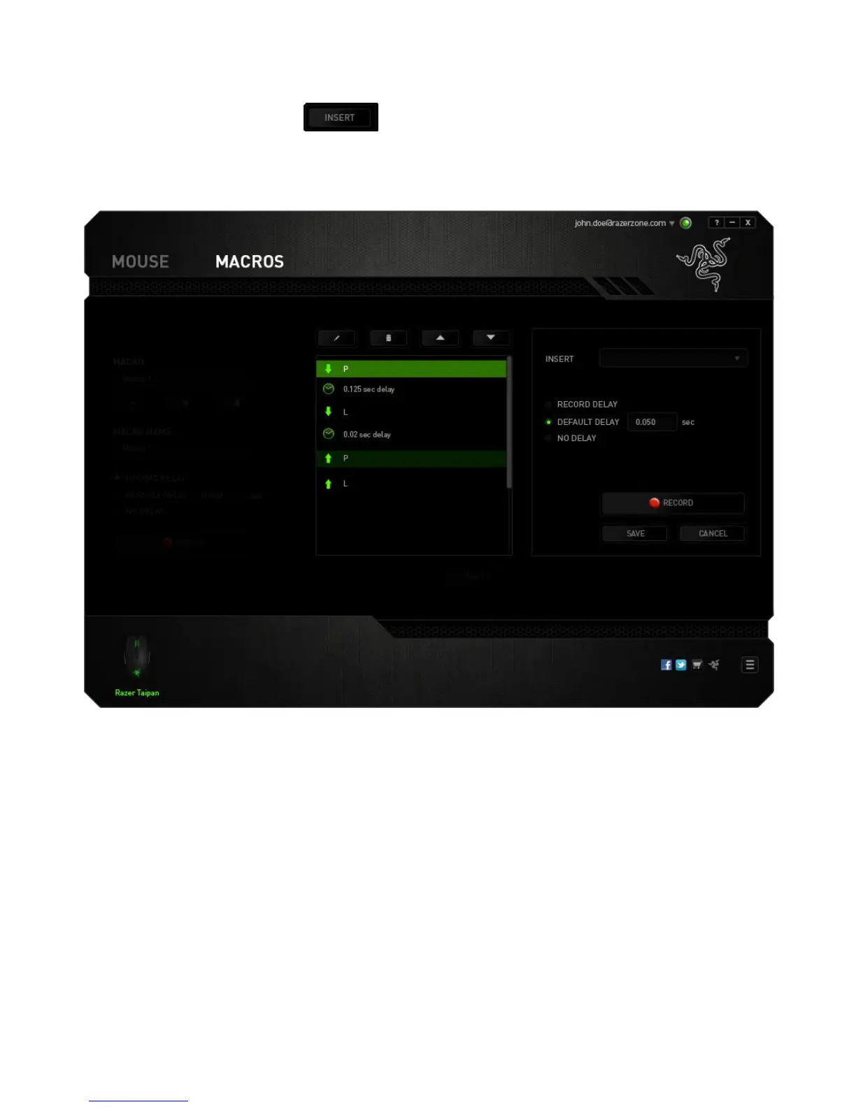 a keystroke or a delay to be added in before or after the highlighted macro command.