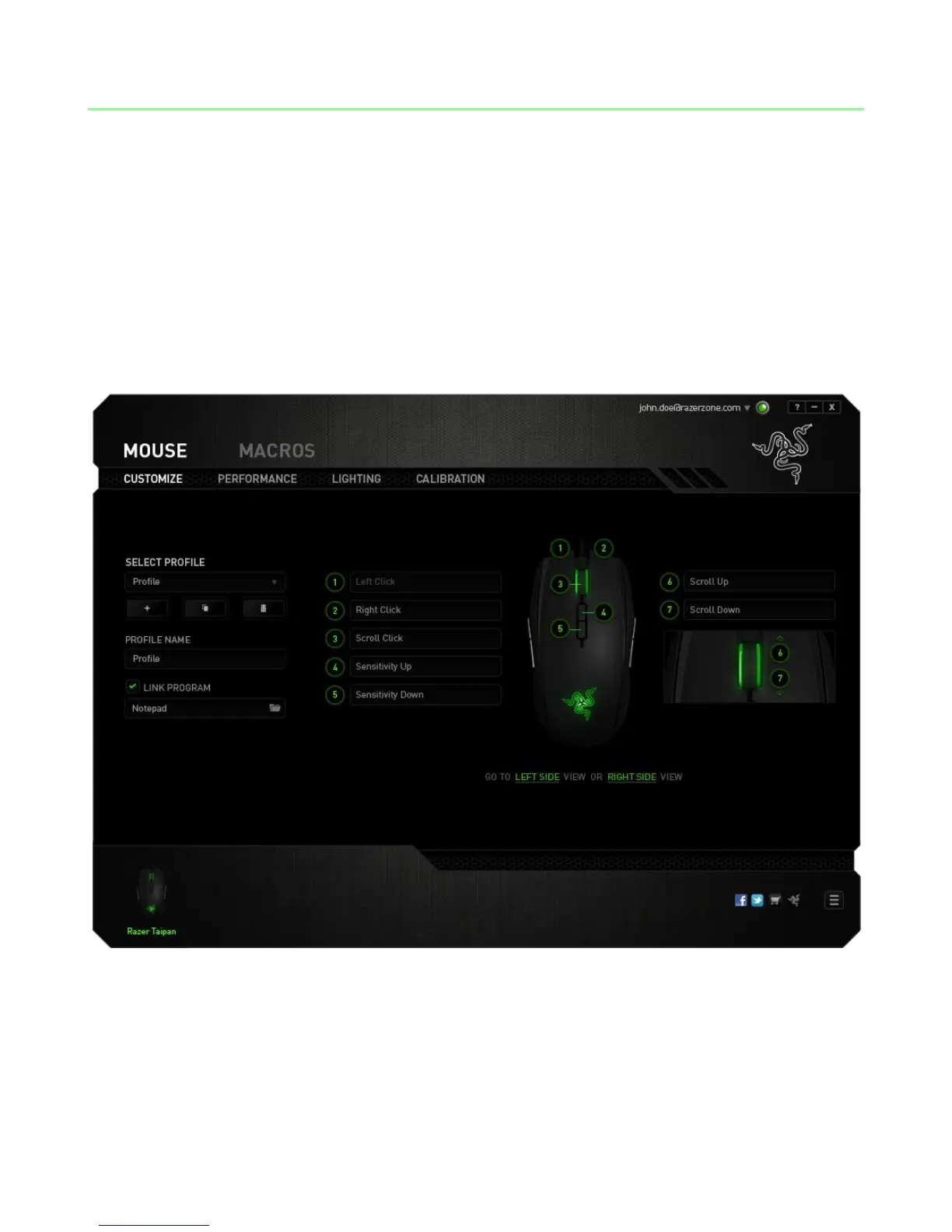 The Mouse Tab is your default tab when you first install Razer Synapse 2.0. This tab
