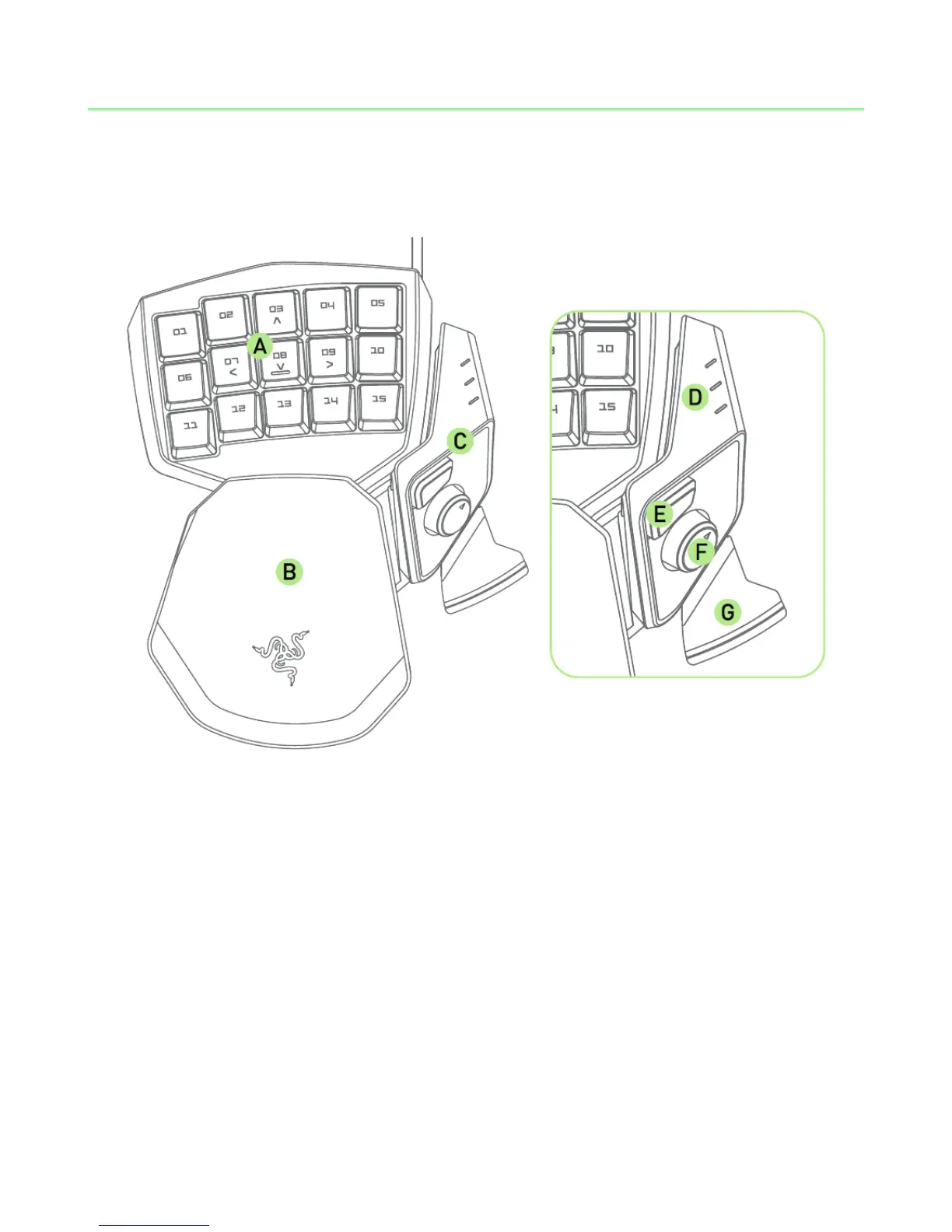 Razer Tartarus - Device Layout; Razer Tartarus Component Identification