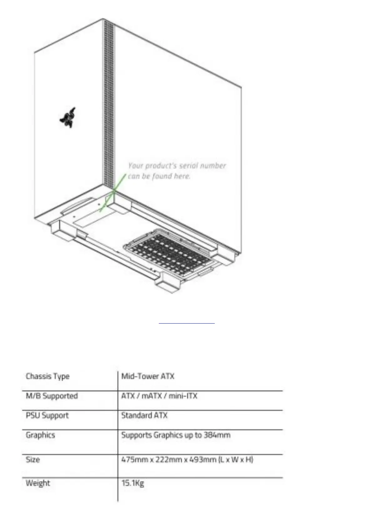 Razer Tomahawk Atx - Chassis Technical Specifications; Tomahawk ATX Chassis Details