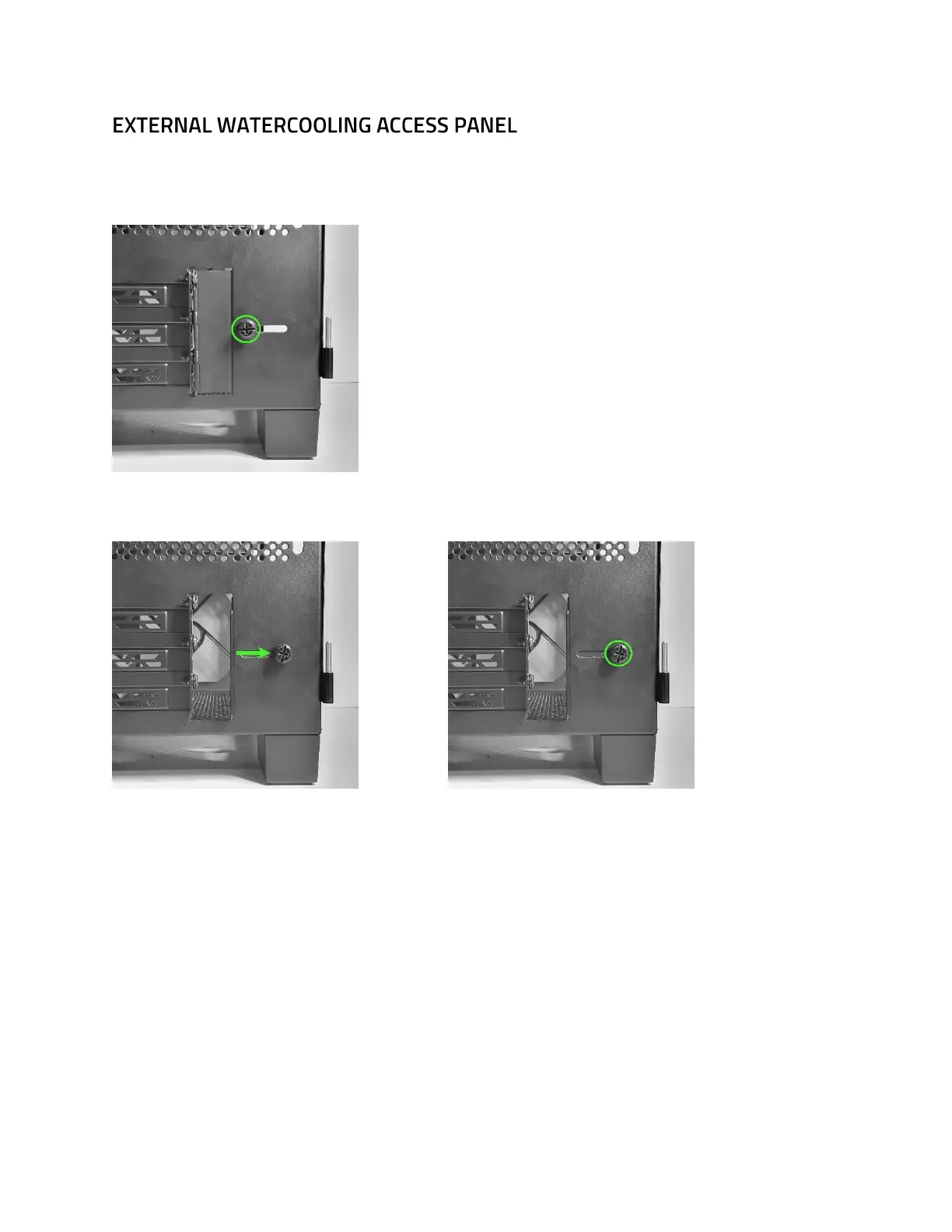 An access panel for external watercooling is located at the rear of the chassis. To start, loosen