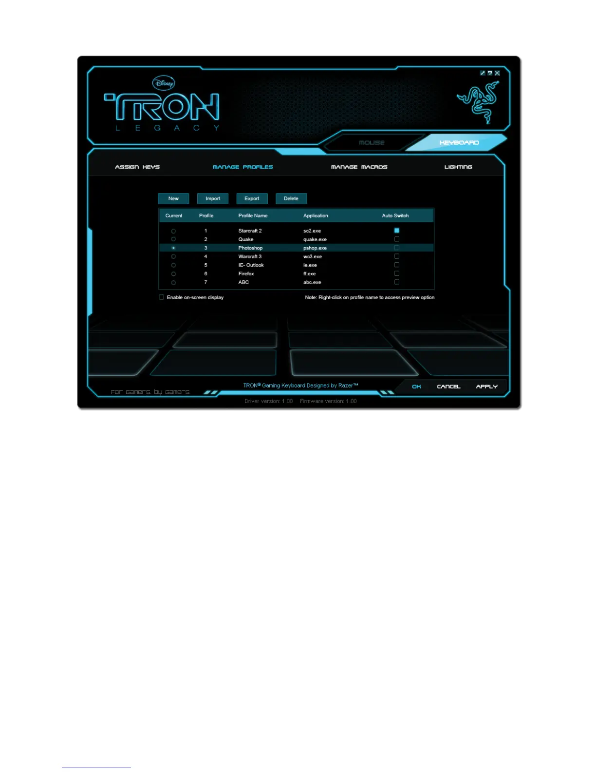 A profile allows you to store your various keyboard settings such as button assignments and macros as a