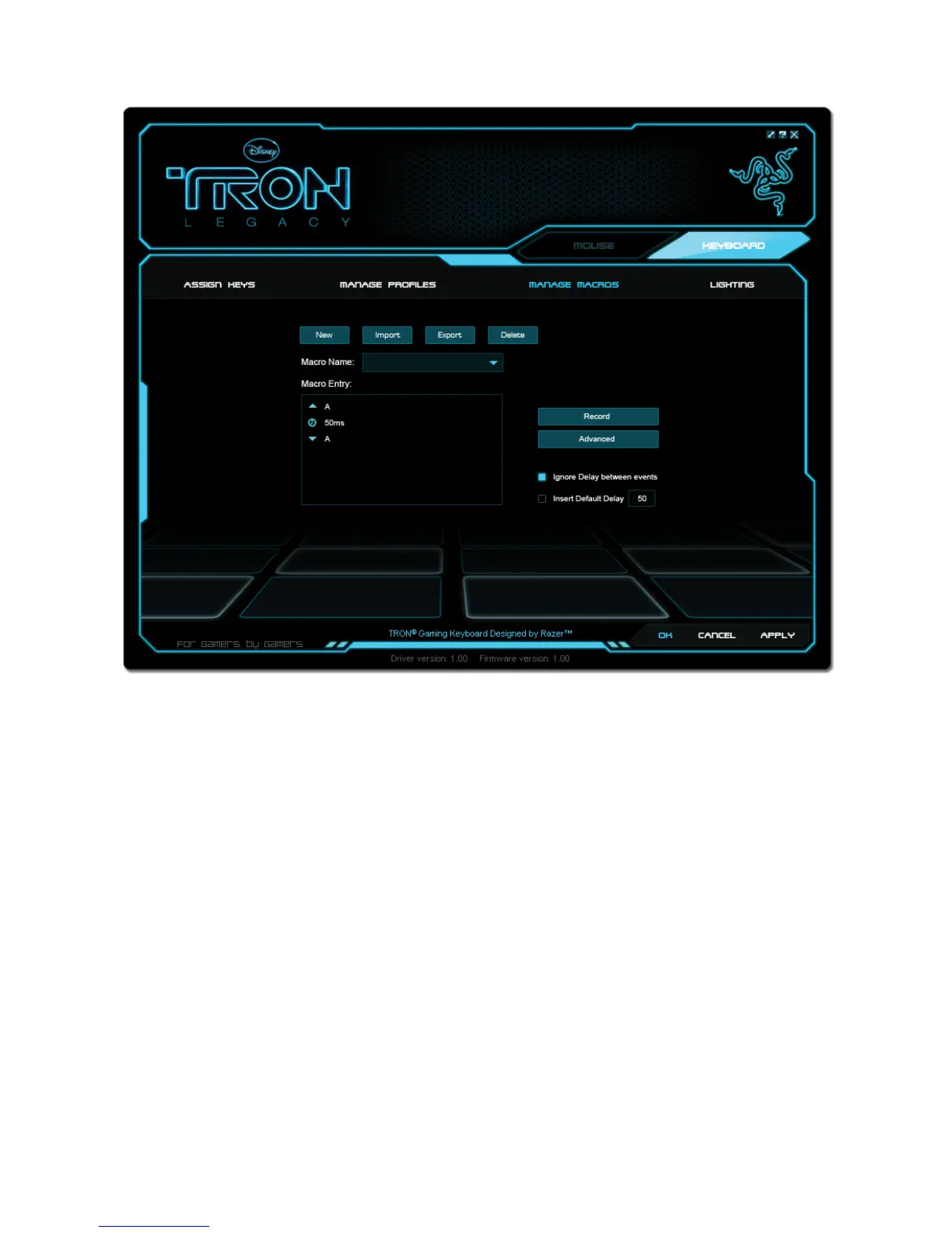 Enter your macro in the Macro Entry box. You can even choose to insert a delay time and/or a mouse-