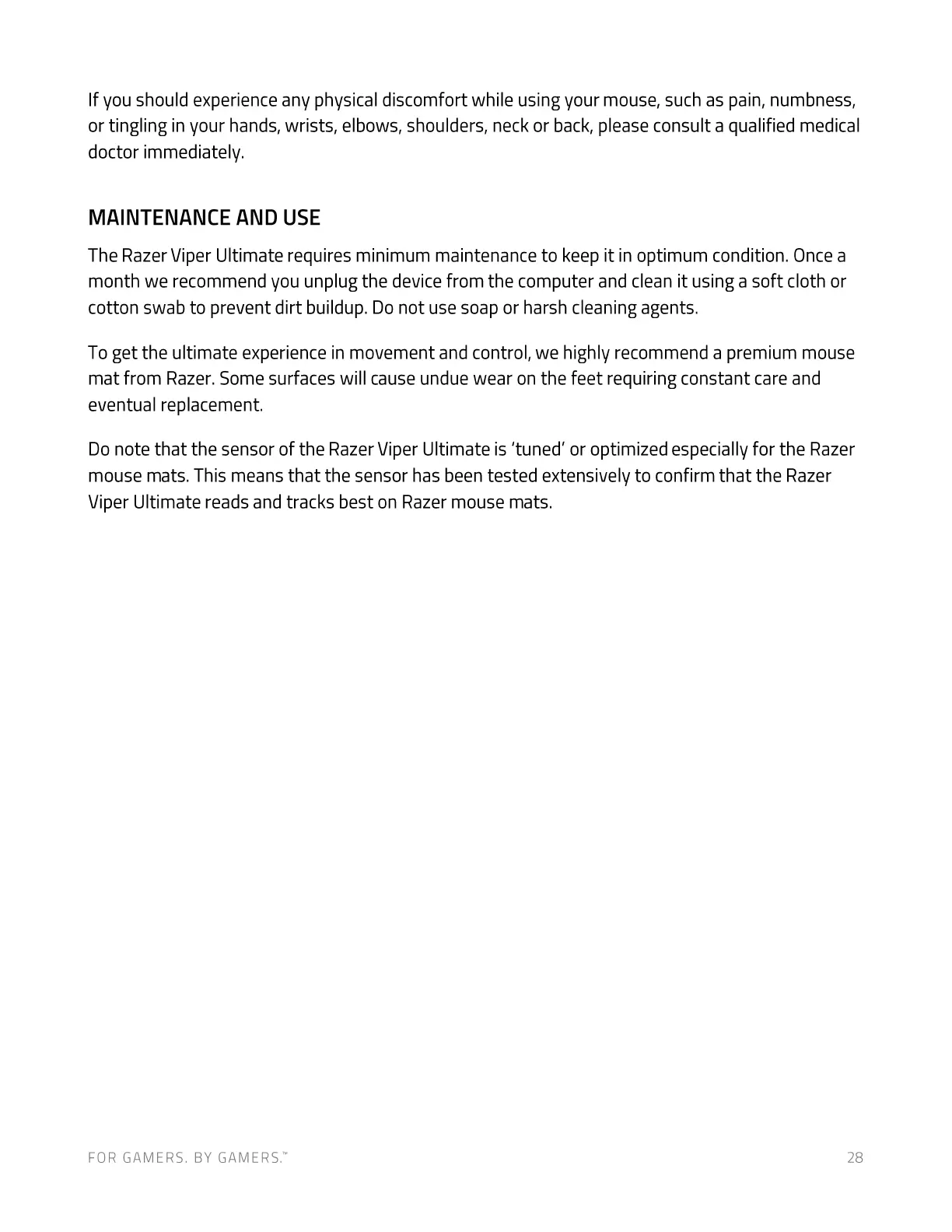 Razer Viper Ultimate - Maintenance and Use Recommendations