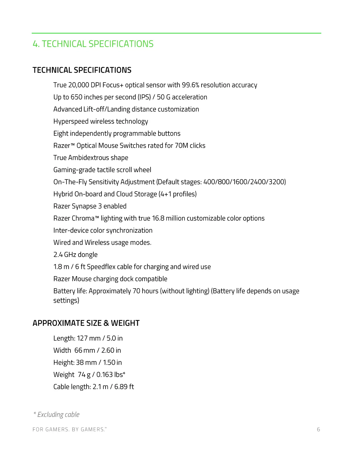 Razer Viper Ultimate - 4. Technical Specifications; Performance Specifications