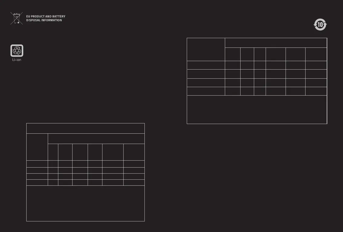 表中标有”X”的所有部件都符合欧盟RoHS法规“关于电子电器设备中限制使用某些有害物质的2011/65/EU指令”