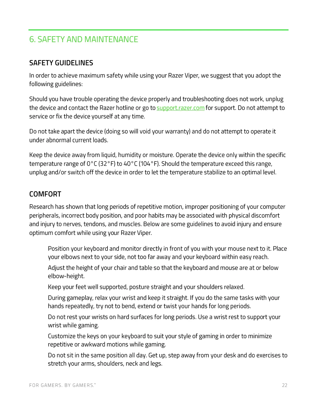 In order to achieve maximum safety while using your Razer Viper, we suggest that you adopt the