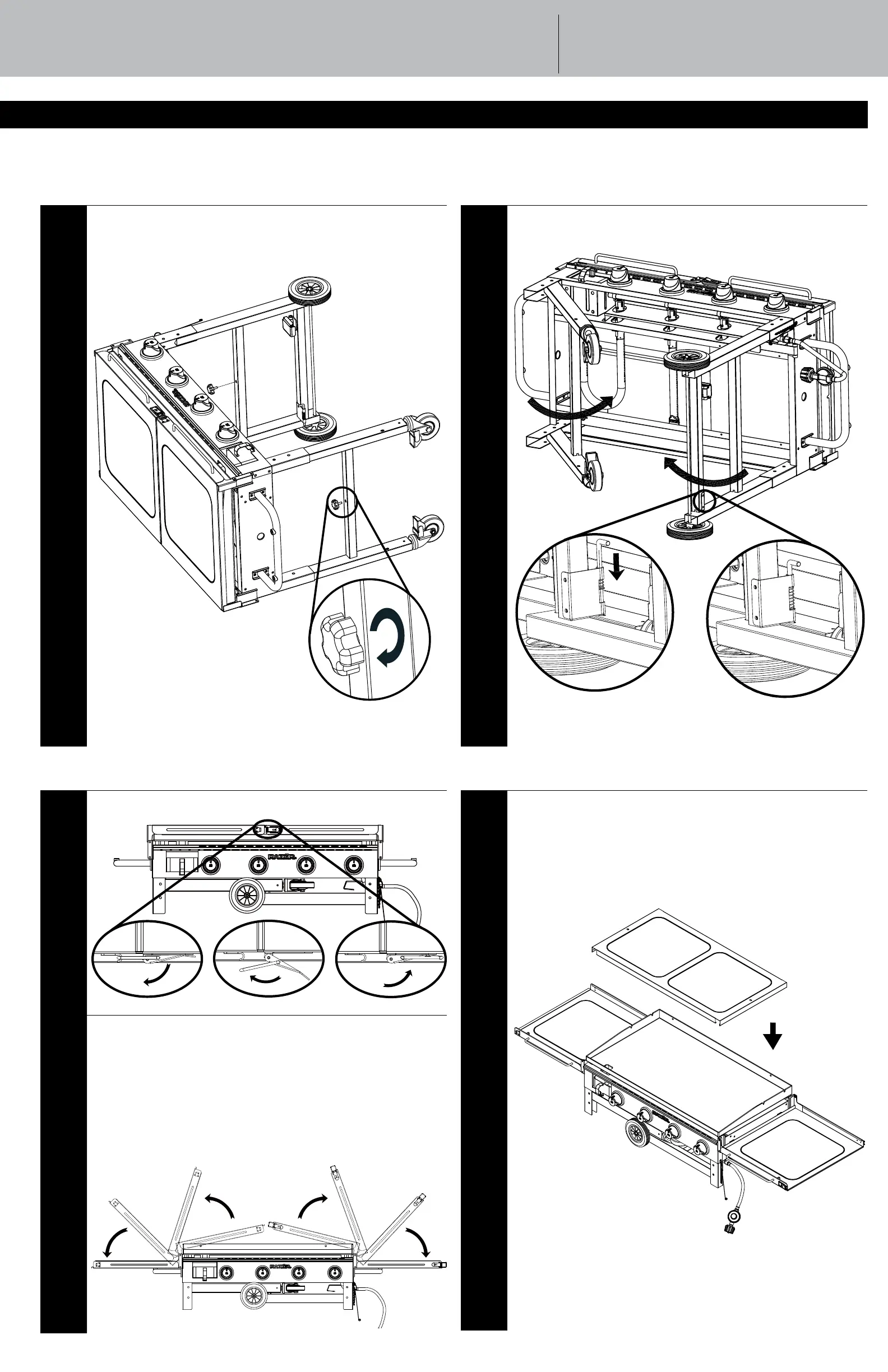 Open right side shelf first, then left side. Make sure side shelves are pushed all the