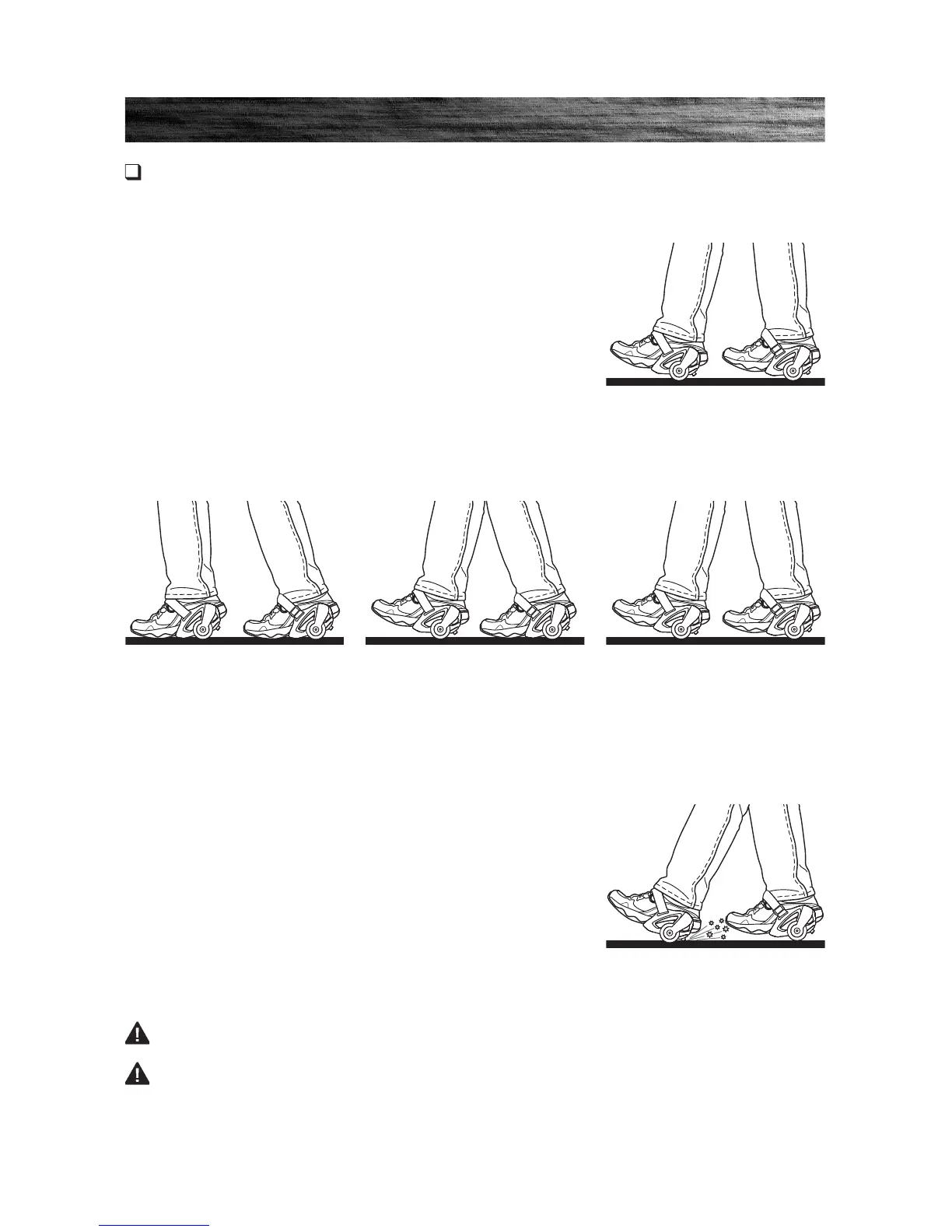 • Practice lifting your toes to feel the balance point of the wheels.